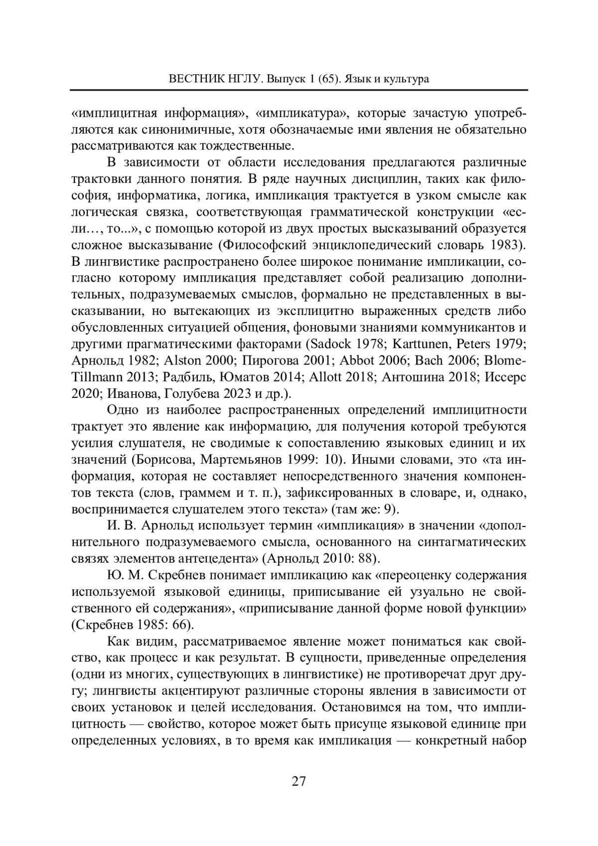 3. Арнольд И. В. Импликация как прием построения текста и предмет филологического изучения // Вопросы языкознания. 1982. № 4. С. 83-90.
