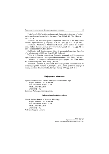 39. Nikolaeva Yu. V. Pragmatic gestures in Russian retellings of “The Pear Stories” // The Russian Journal of Cognitive Science. 2017. Vol. 4 (2-3). P. 6-12.