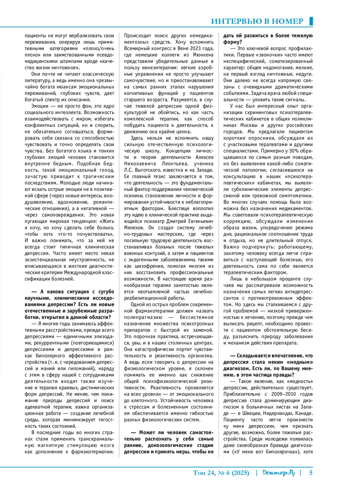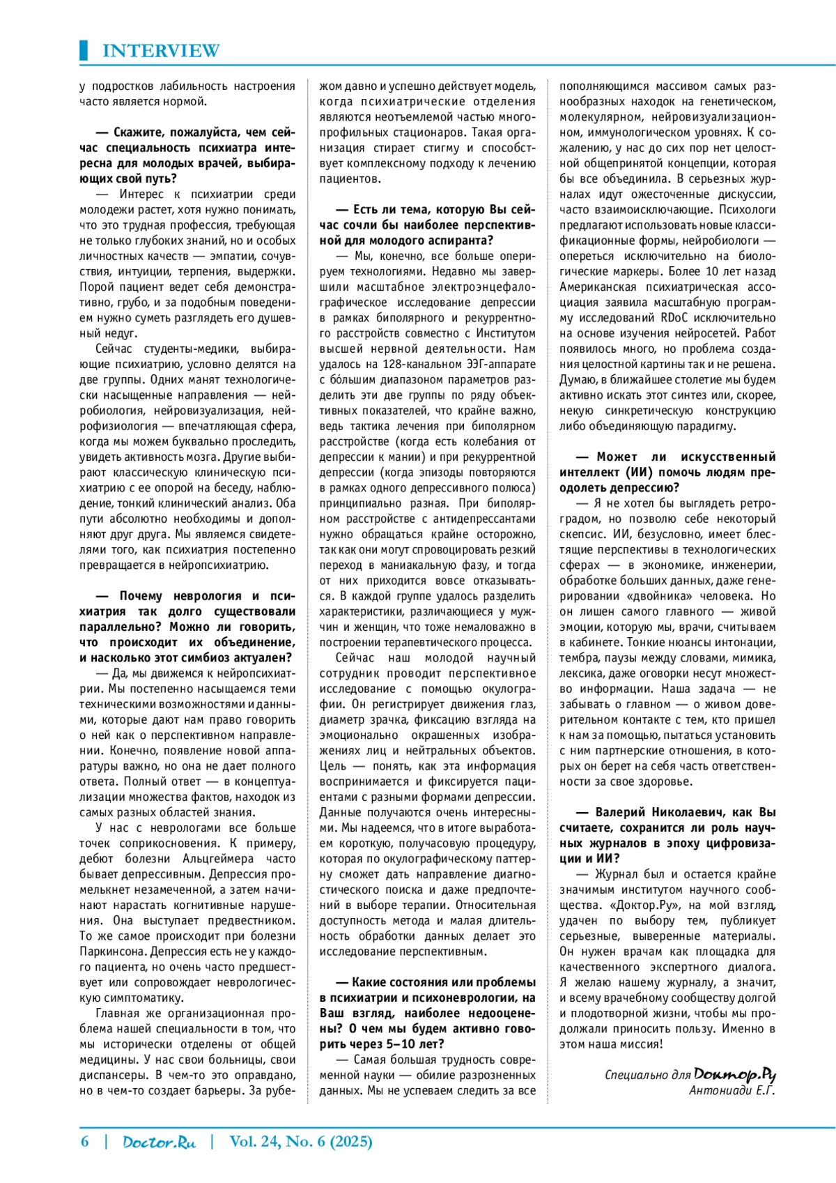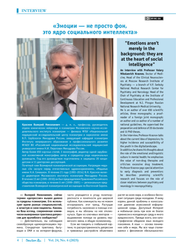 АНТОНИАДИ Е.Г. «ЭМОЦИИ — НЕ ПРОСТО ФОН, ЭТО ЯДРО СОЦИАЛЬНОГО ИНТЕЛЛЕКТА» // ДОКТОР. РУ. 2025. № 6, ТОМ 24