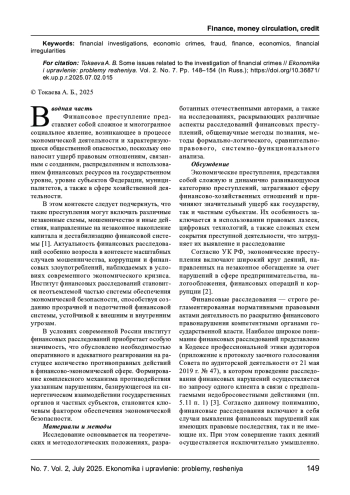 В статье рассматриваются ключевые аспекты понятия «финансовое расследование», современные особенности расследования финансовых преступлений, методологические основы и прикладное значение в современной экономической практике. Анализируются ключевые тенденции в расследовании финансовых преступлений, выявляются основные проблемы и предлагаются практические рекомендации для повышения результативности борьбы с этим видом преступности. Автор рассматривает экономические преступления (налоговые правонарушения) и методы их расследования. Особое внимание уделяется анализу условий, при которых проведение финансового расследования является целесообразным, а также его целям, основным видам и результатам. В результате делается вывод о том, что финансовое расследование является неотъемлемым элементом системы экономической безопасности компаний и предлагаются рекомендации по повышению эффективности расследований, развитию цифровых инструментов.
