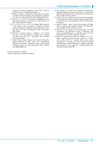 21. Tang B., Meng W., Hogg S., Burgess S. et al. Reciprocal interaction between depression and pain: results from a comprehensive bidirectional Mendelian randomization study and functional annotation analysis. Pain. 2022;163(l):e40-8. 10.1097/j. pain.0000000000002305. DOI: 10.1097/j.pain.0000000000002305