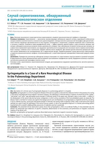 Цель. Описание клинического случая диагностики сирингомиелии у пациента пульмонологического профиля в стационаре.