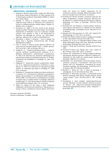 4. Manouilenko I., Bejerot S. Sukhareva - prior to Asperger and Kanner. Nord J. Psychiatry. 2015;69:479-82. 10.3109/ 08039488.2015.1005022. DOI: 10.3109/08039488.2015.1005022