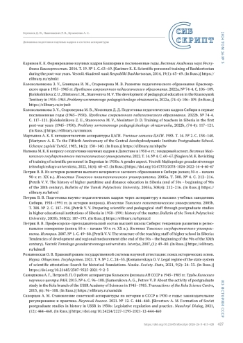 22. Цеховой Н. П. Аспирантура как средство советизации высшей школы во второй половине 1920-х - первой половине 1930-х гг. (на примере Томского государственного университета). Вестник Томского государственного университета. 2011a. № 351. С. 112-114. https://elibrary.ru/ohygan