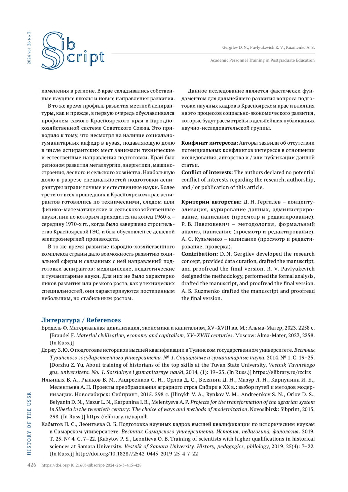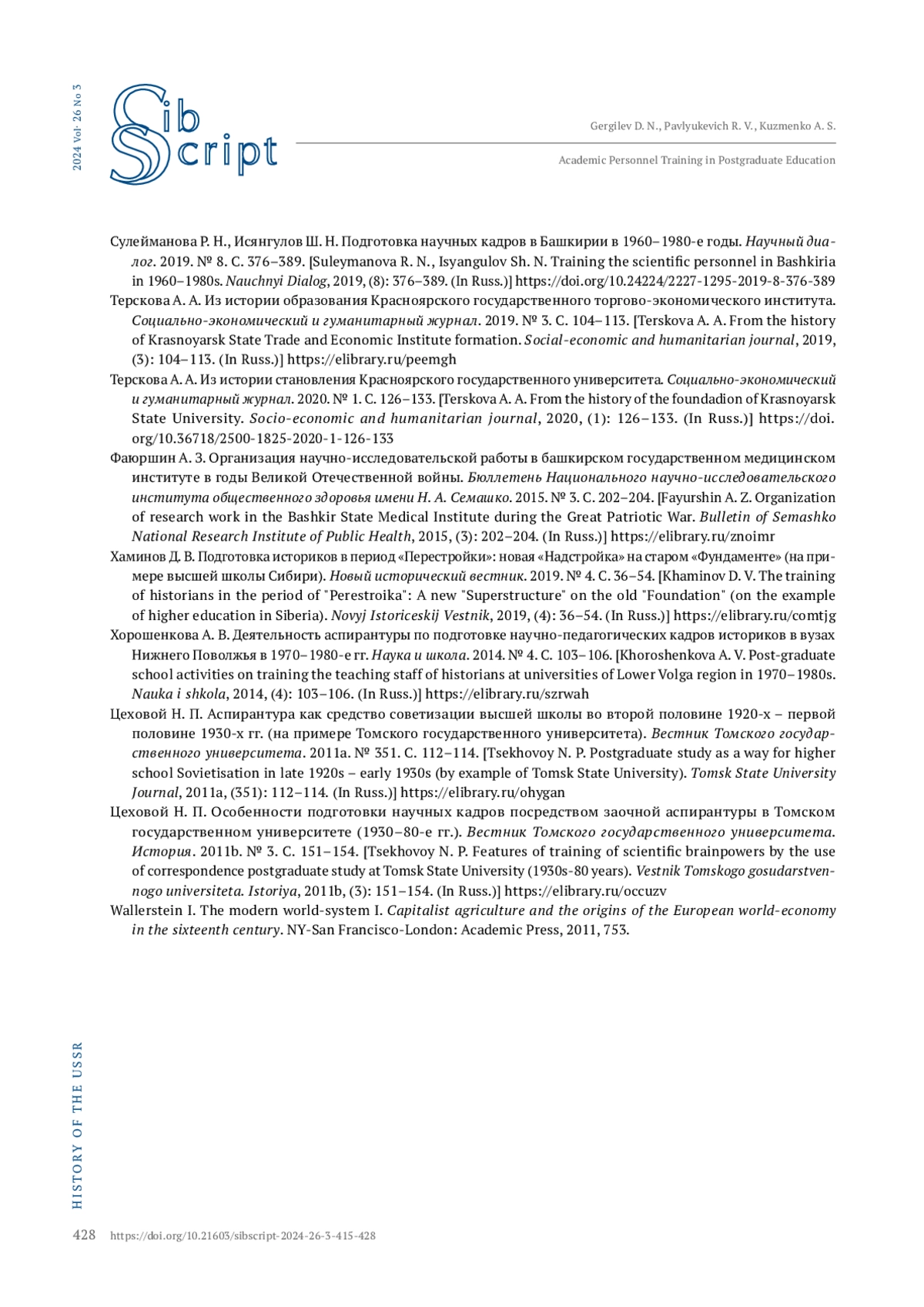 15. Скворцов А. М. Становление советской аспирантуры по истории в СССР в 1930-е годы: законодательное регулирование и практика. Научный диалог. 2021. № 12. С. 444-460. https://doi.org/10.24224/2227-1295-2021-12-444-460