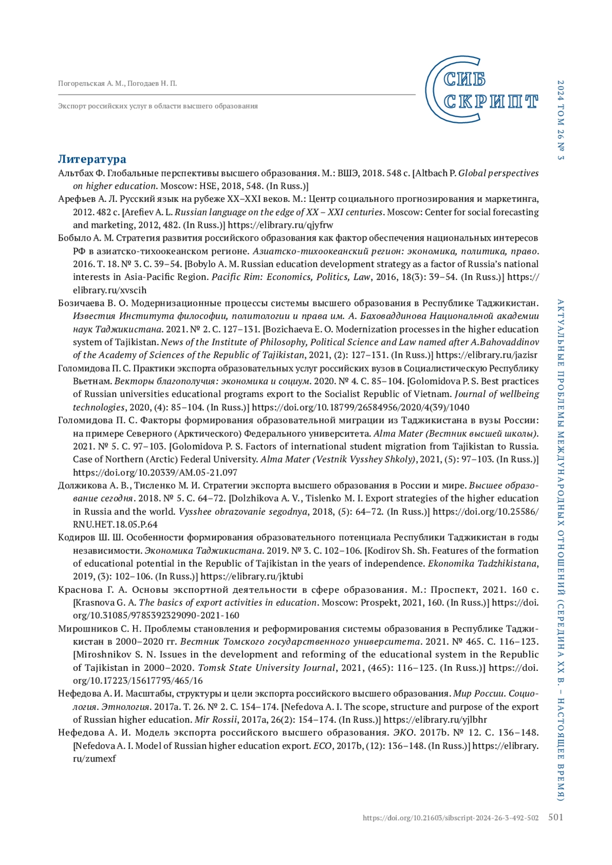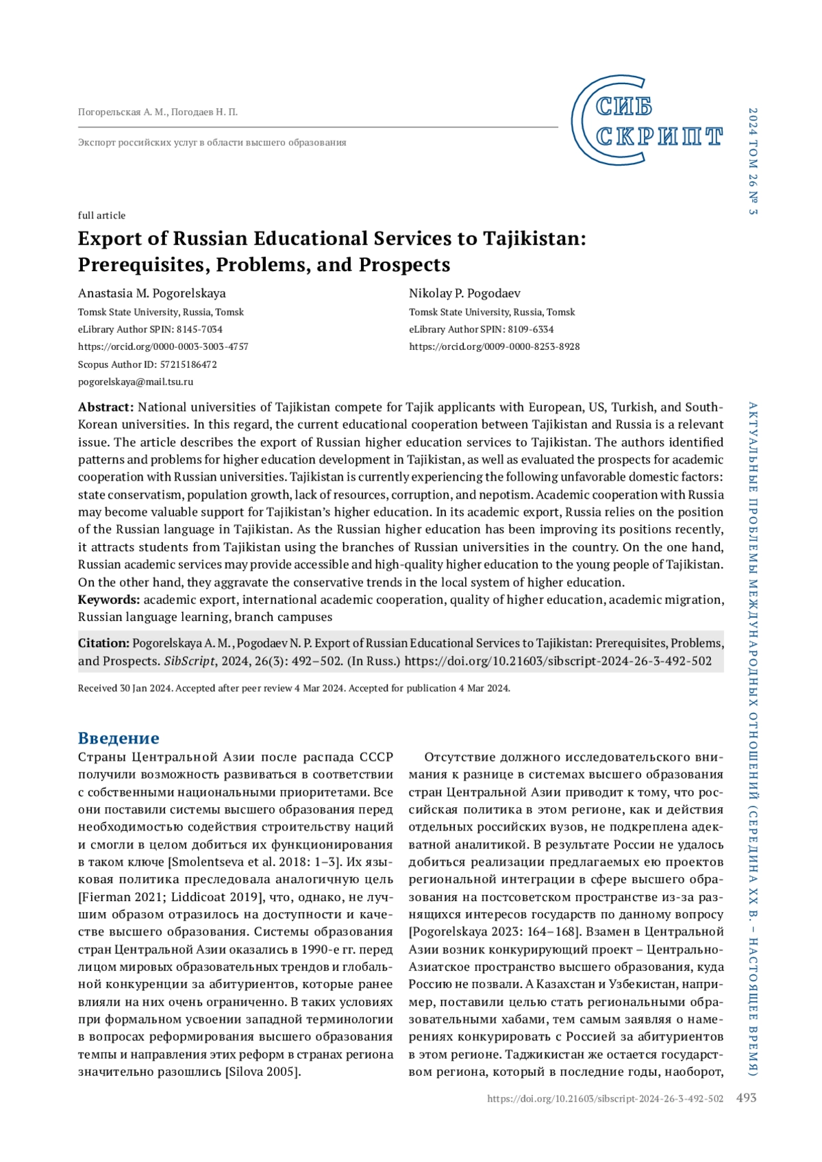 - 10.21603/sibscript-2024-26-3-492-502