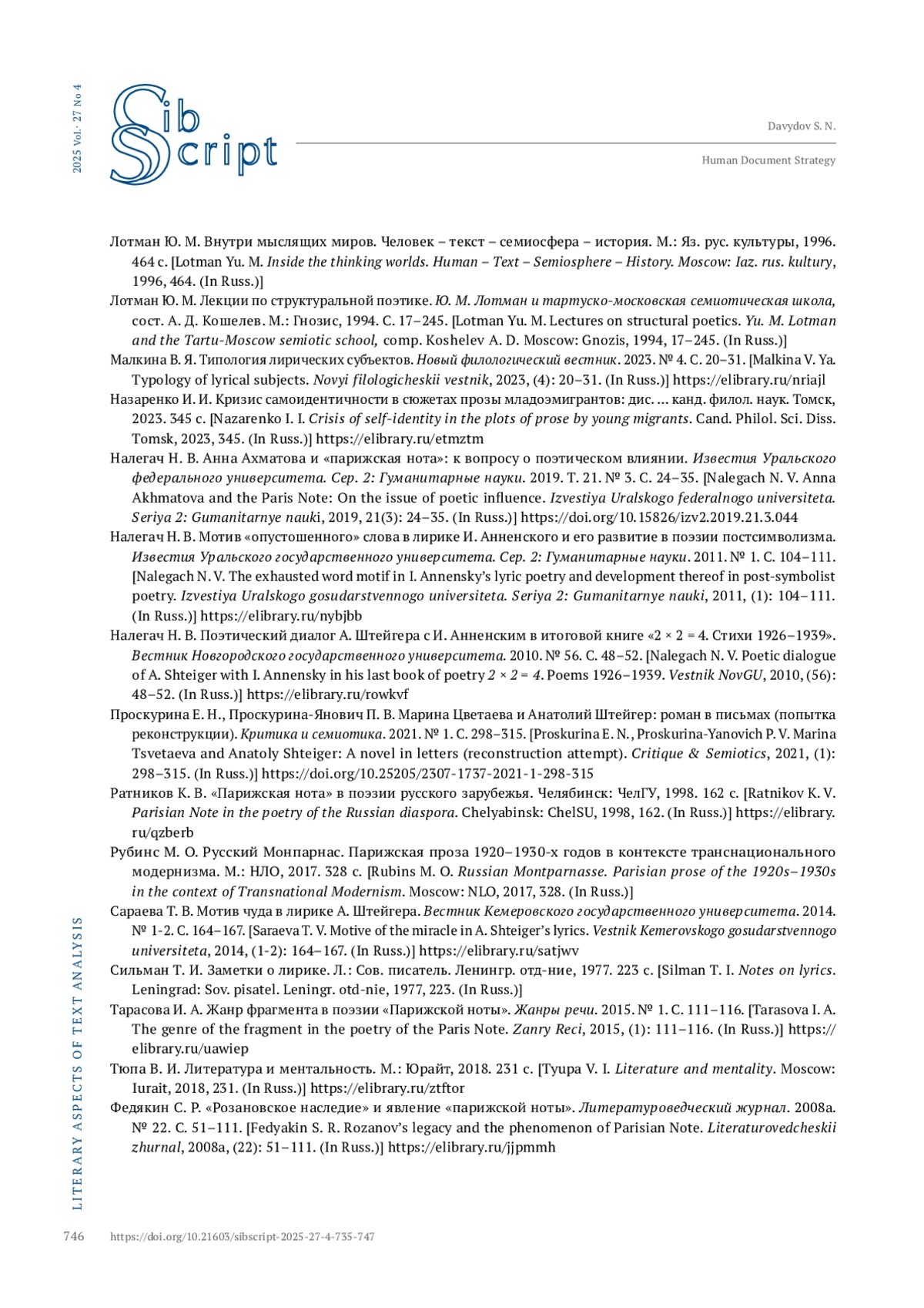 1. Ассман Я. Культурная память: Письмо, память о прошлом и политическая идентичность в высоких культурах древности. М.: ЯСК, 2004. 368 с. https://elibrary.ru/qovtzj