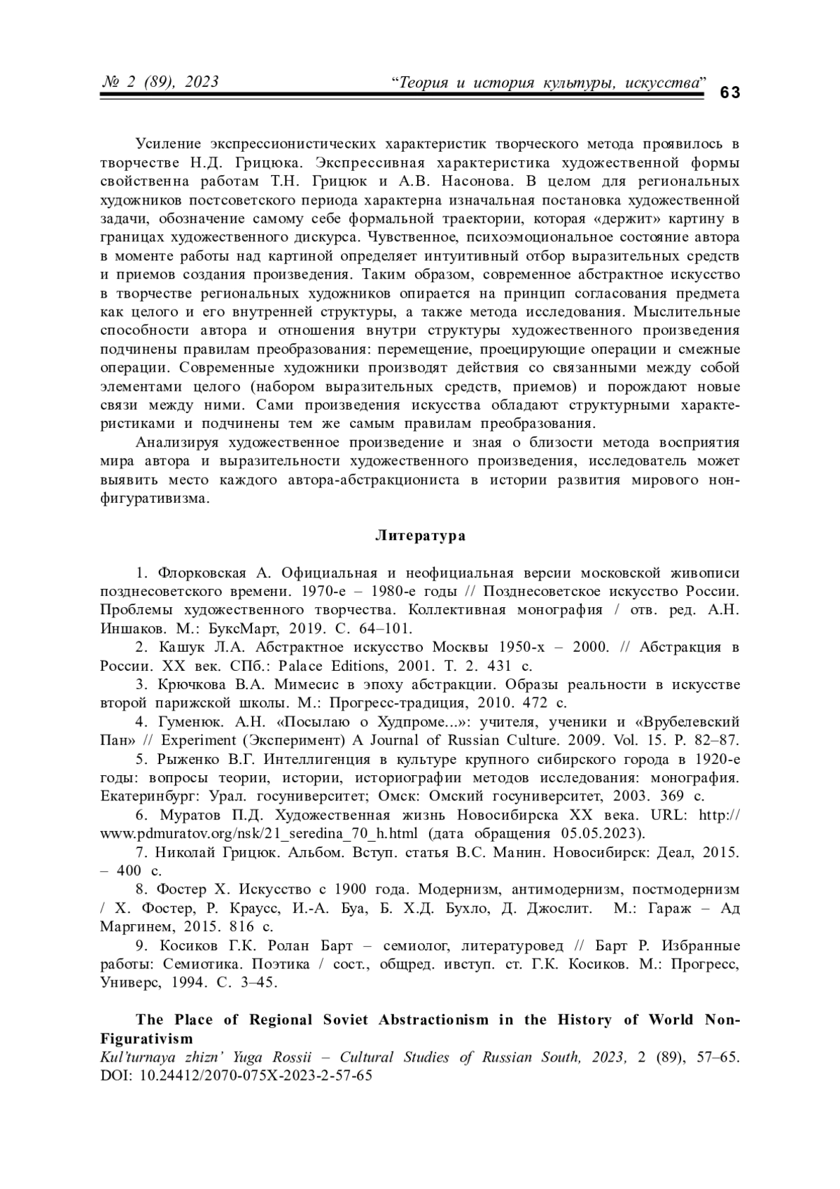 1. Флорковская А. Официальная и неофициальная версии московской живописи позднесоветского времени. 1970-е - 1980-е годы // Позднесоветское искусство России. Проблемы художественного творчества. Коллективная монография / Отв. ред. А.Н. Иншаков. М.: БуксМарт, 2019. С. 64-101. EDN: AQVXUM