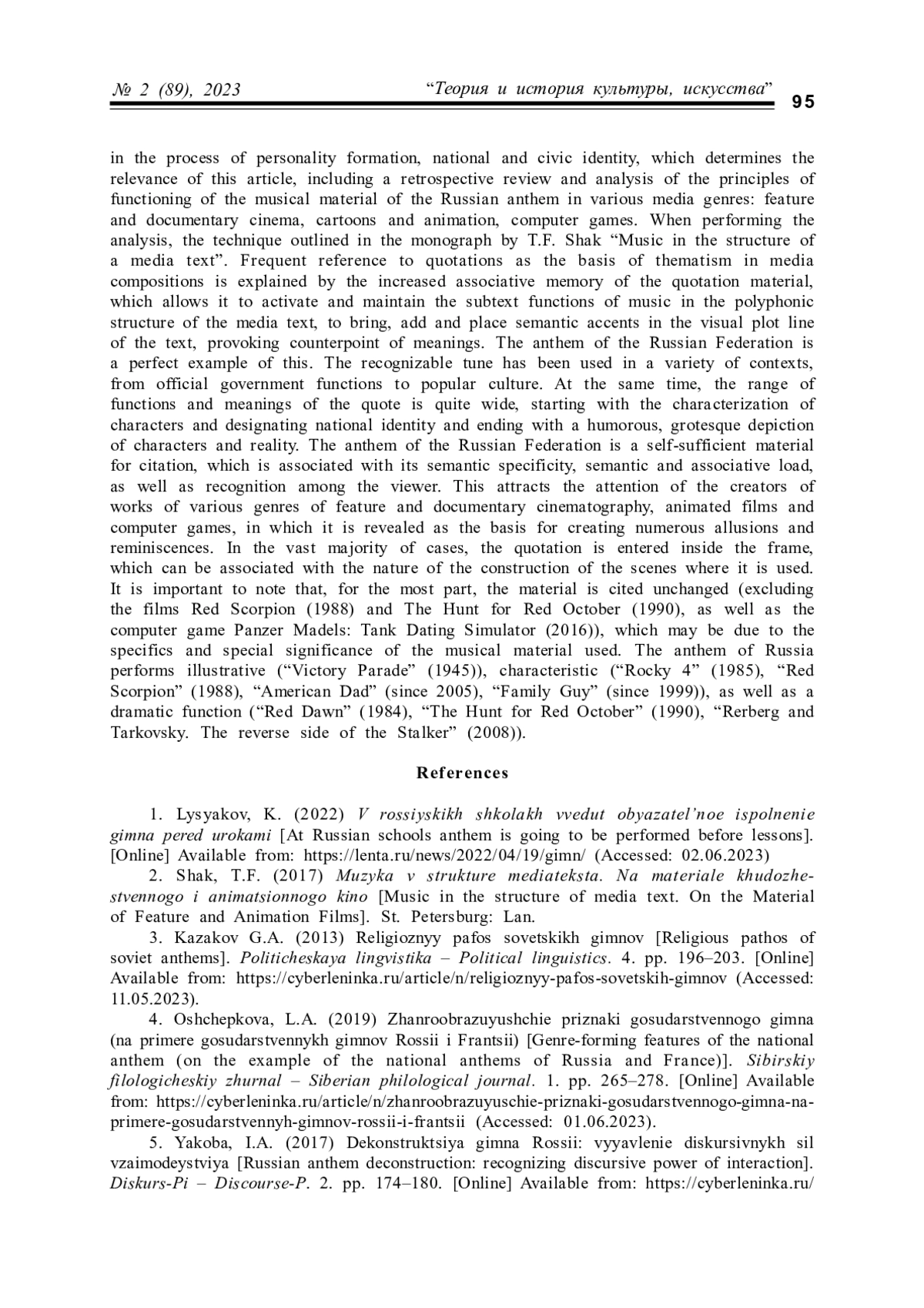 Статья: ПОЛИФУНКЦИОНАЛЬНОСТЬ МУЗЫКАЛЬНОГО МАТЕРИАЛА ЦИТАТЫ В МЕДИАЖАНРАХ (2023)