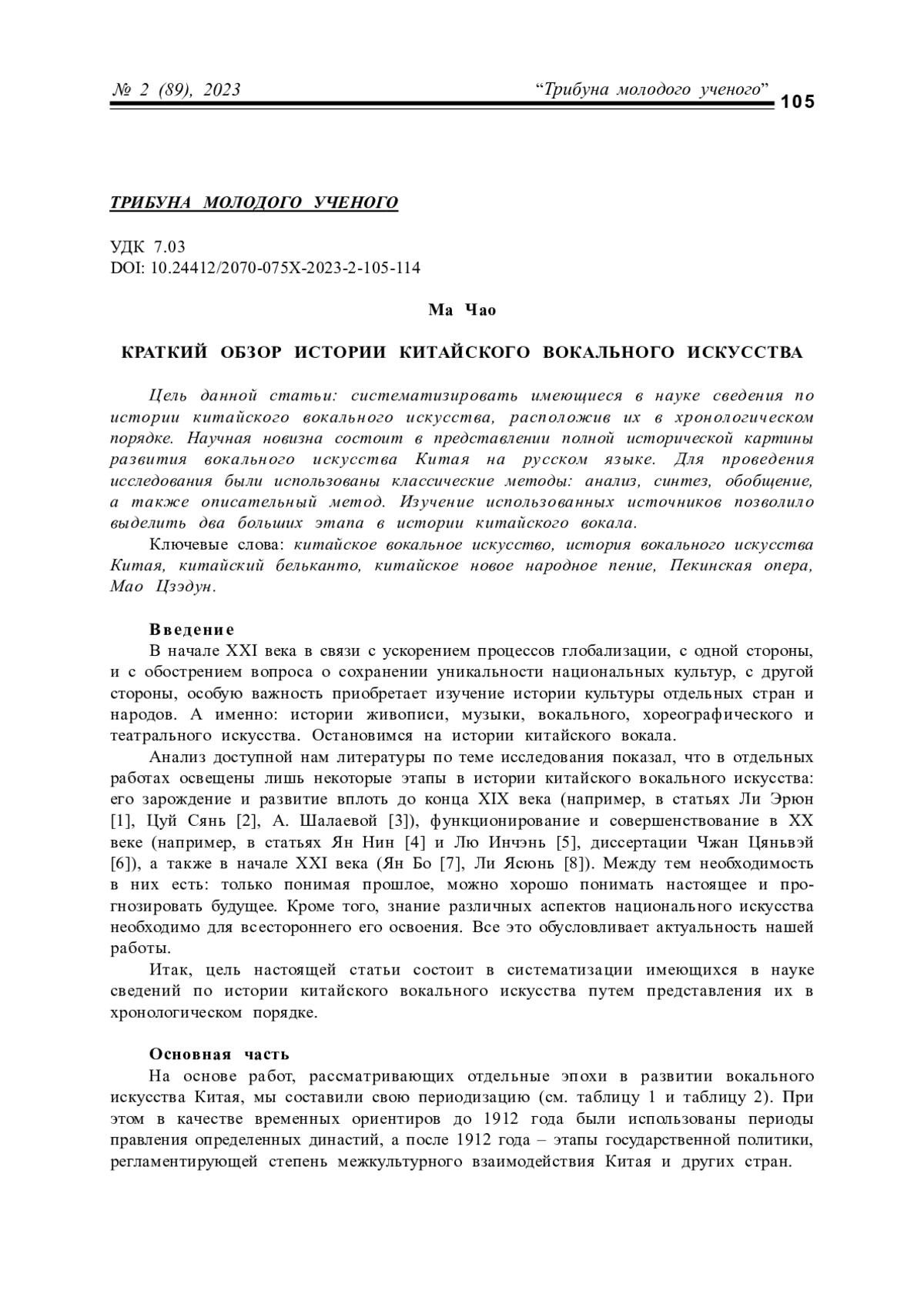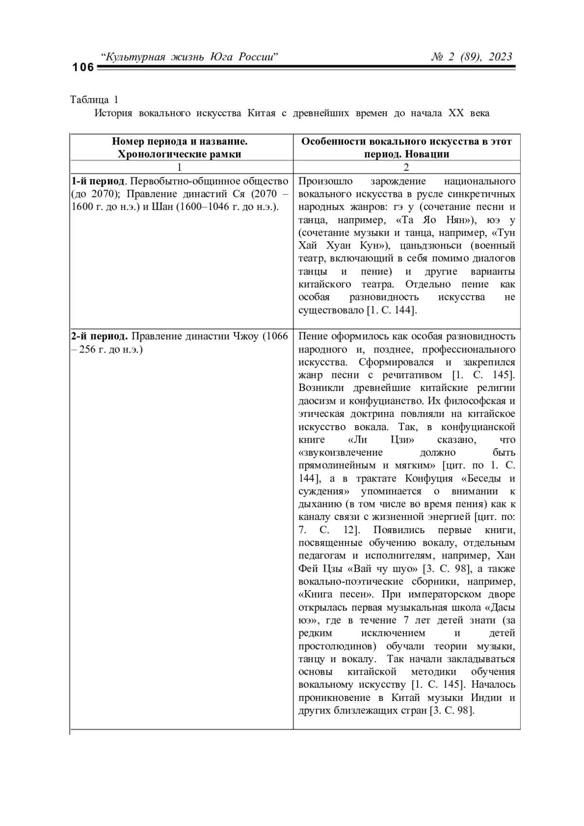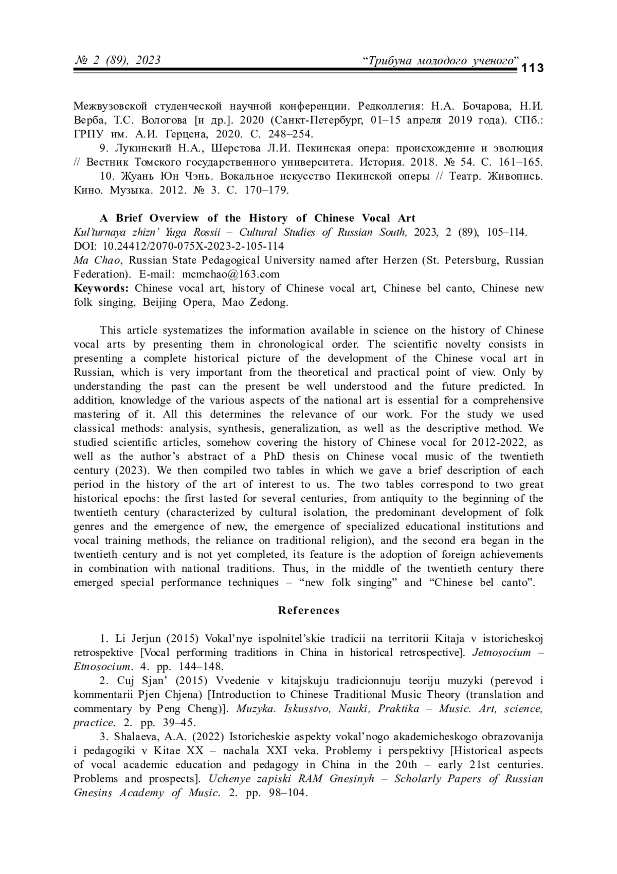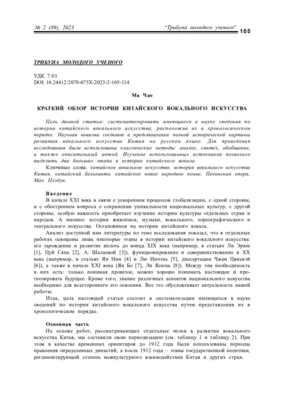 МА Ч. КРАТКИЙ ОБЗОР ИСТОРИИ КИТАЙСКОГО ВОКАЛЬНОГО ИСКУССТВА // КУЛЬТУРНАЯ ЖИЗНЬ ЮГА РОССИИ. 2023. № 2 (89)