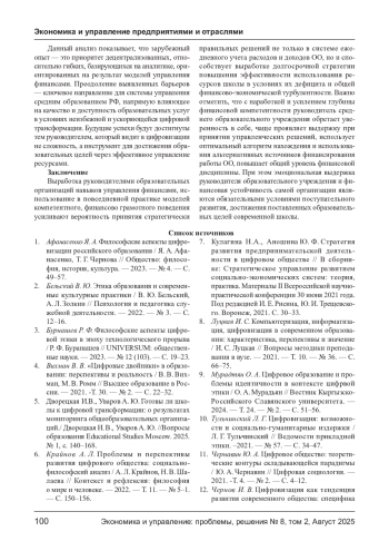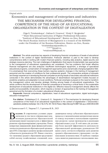 В статье исследуются ключевые аспекты развития финансовой компетентности руководителей образовательных учреждений в условиях цифровой трансформации. Особое внимание уделяется необходимости формирования комплексных навыков работы с современными финансовыми системами, включая аналитику данных, цифровую безопасность и стратегическое планирование ресурсов. Рассматриваются основные вызовы цифровизации, требующие принципиально новых подходов к управлению образовательными организациями. Также анализируются ключевые проблемы, препятствующие эффективному финансовому управлению: недостаточная технологическая оснащенность, дефицит специализированных образовательных программ, консервативность управленческих подходов и динамично меняющееся законодательное поле. Подчеркивается, что преодоление этих барьеров требует системных изменений в подготовке управленческих кадров и создания условий для их профессионального роста. Проведенный в статье сравнительный анализ отечественного и зарубежного опыта формирования финансовой компетентности у руководителей средних образовательных учреждений демонстрирует преимущества децентрализованных моделей управления, ориентированных на прогнозную аналитику и адаптацию к локальным условиям. Особый акцент делается на необходимости трансформации управленческой культуры и развития стратегического мышления у руководителей образовательных организаций. Статья подтверждает, что развитие финансовой компетентности становится критически важным фактором устойчивого развития образовательных учреждений в цифровую эпоху. Эффективное управление ресурсами напрямую влияет на качество и доступность образования, что требует пересмотра подходов к подготовке управленческих кадров и формированию современной образовательной инфраструктуры.