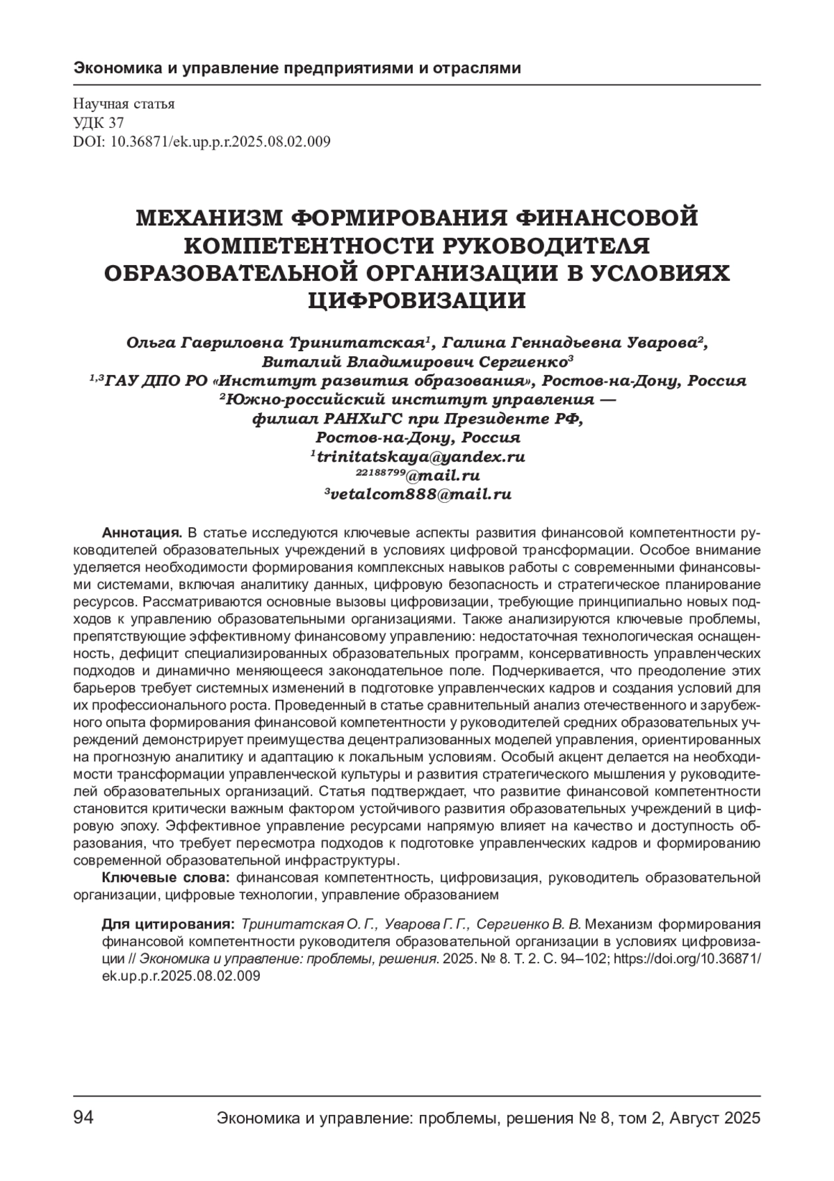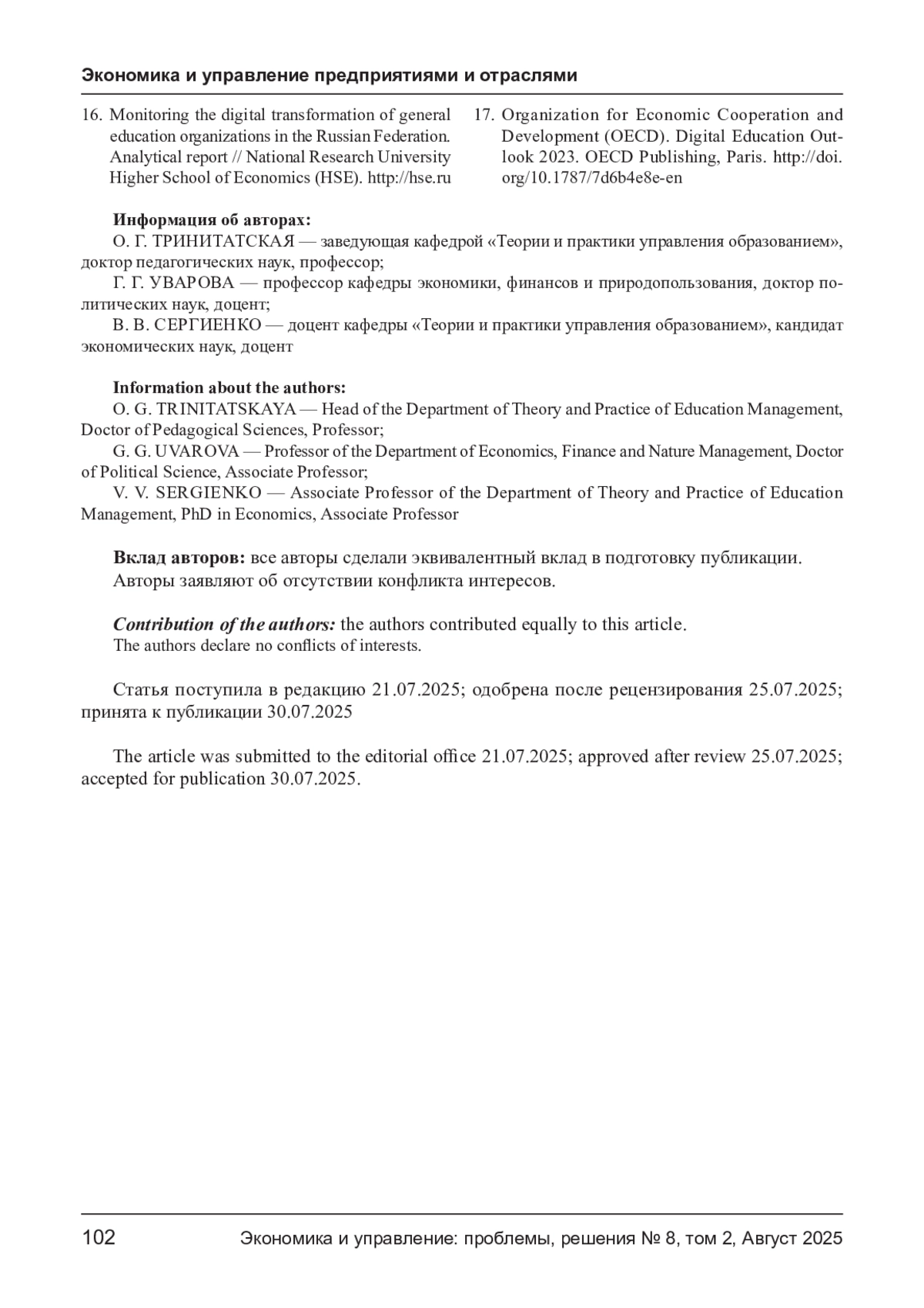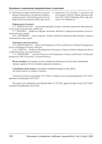 5. Дворецкая И.В., Уваров А. Ю. Готовы ли школы к цифровой трансформации: о результатах мониторинга общеобразовательных организаций./ Дворецкая И. В., Уваров А. Ю. //Вопросы образования Educational Studies Moscow. 2025. № 1, с. 140-168.
