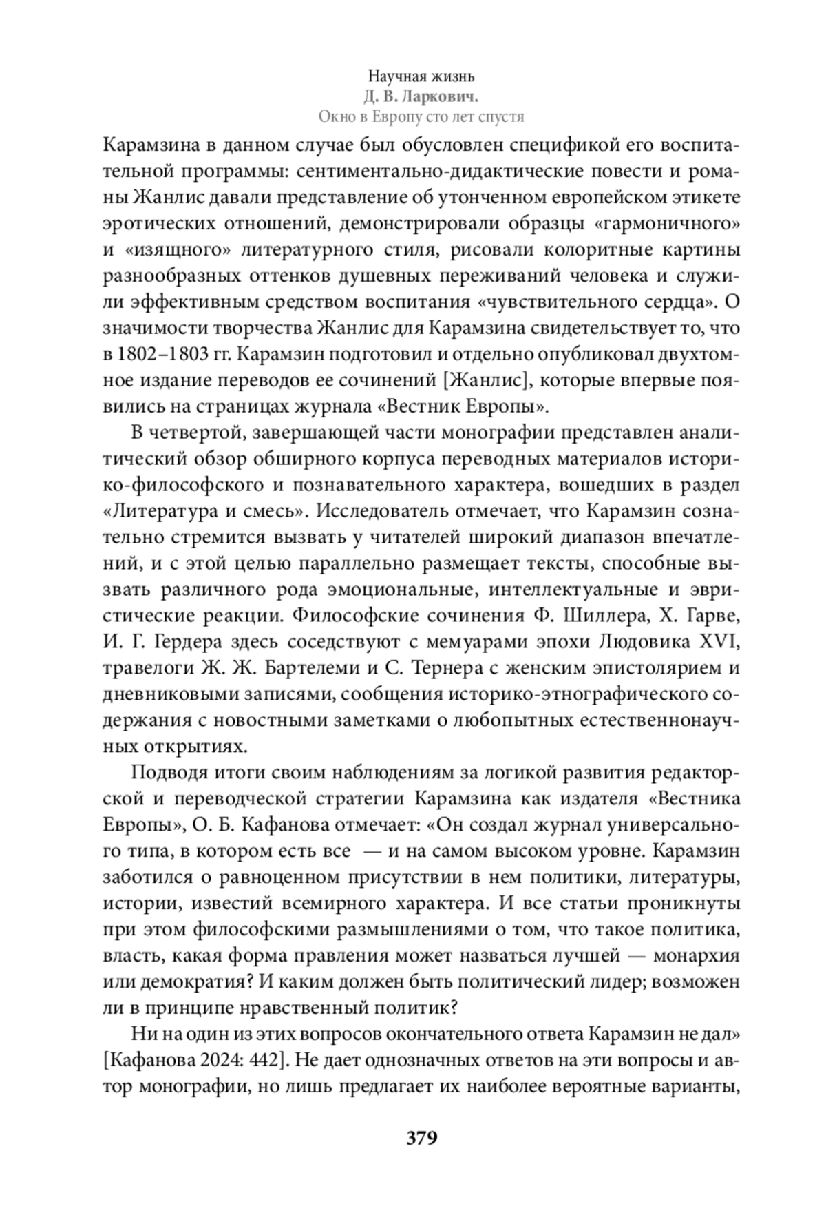 6. Кафанова О. Б. Переводы Н. М. Карамзина как культурный универсум. СПб.: Алетейя, 2020. 356 с.