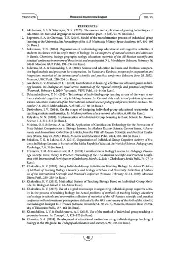6. Джамалутдинова Т. М. Технология индивидуально-группового обучения как один из способов активизации познавательной деятельности учащихся на уроках биологии // Современное состояние и актуальные проблемы естественнонаучного образования: материалы Международного естественнонаучного педагогического форума (Ростов-на-Дону, 7-8 декабря 2023 года). Махачкала: Алеф, 2024. С. 57-60. EDN: SNQPSK