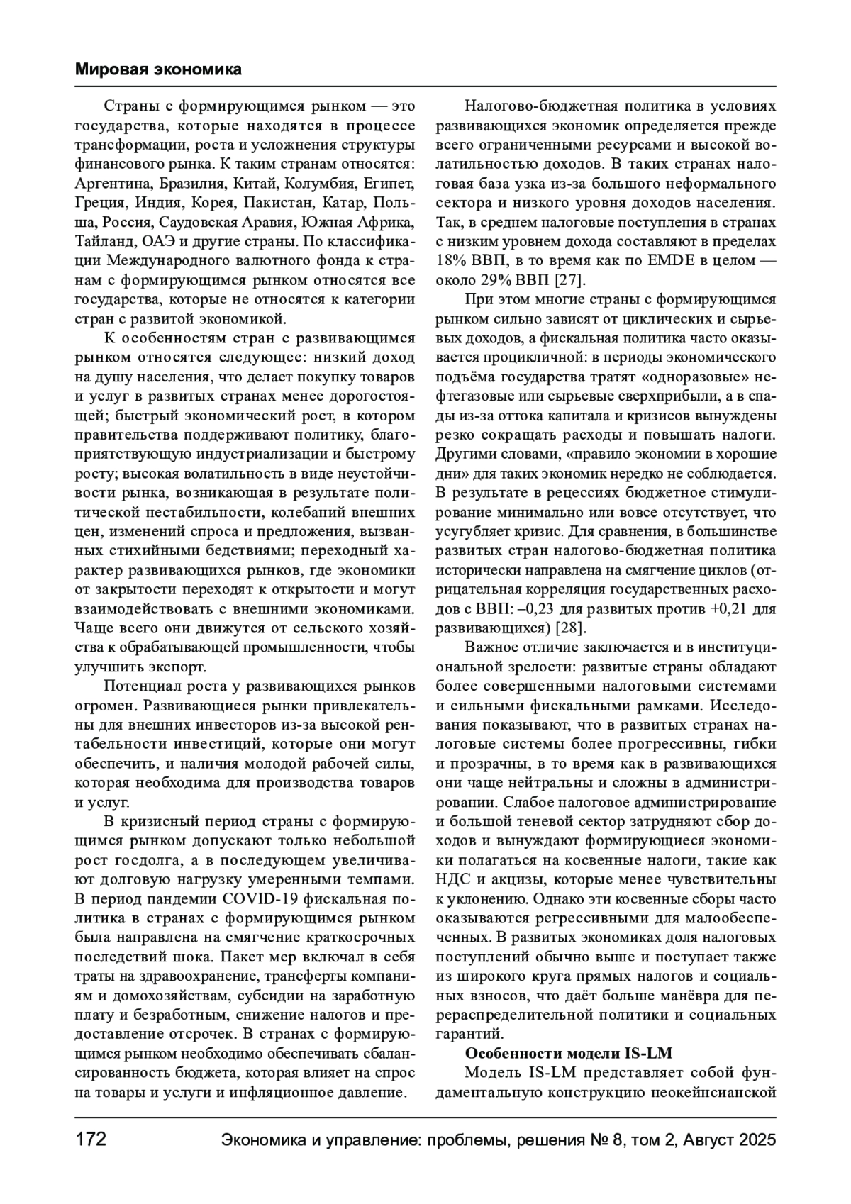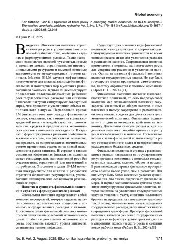Фискальная политика играет ключевую роль в управлении экономической стабильностью, особенно в странах с формирующимся рынком.