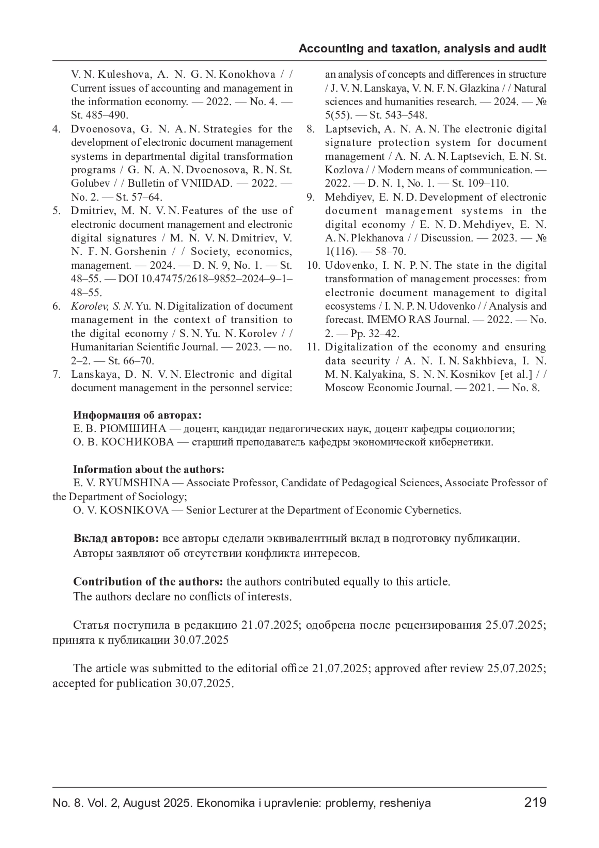 9. Мехдиев, Э. Т. Развитие систем электронного документооборота в цифровой экономике / Э. Т. Мехдиев, Е. А. Плеханова // Дискуссия. - 2023. - № 1(116). - С. 58-70. EDN: UYIQNE
