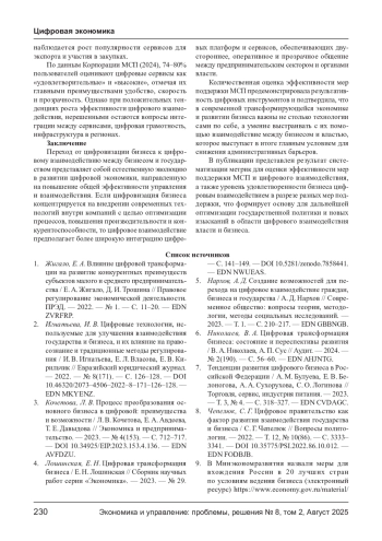 8. Чепелюк, С. Г. Цифровое правительство как фактор развития взаимодействия государства и бизнеса / С. Г. Чепелюк // Вопросы политологии. - 2022. - Т. 12, № 10(86). - С. 3333- 3341. DOI: 10.35775/PSI.2022.86.10.012 EDN: FODBJB