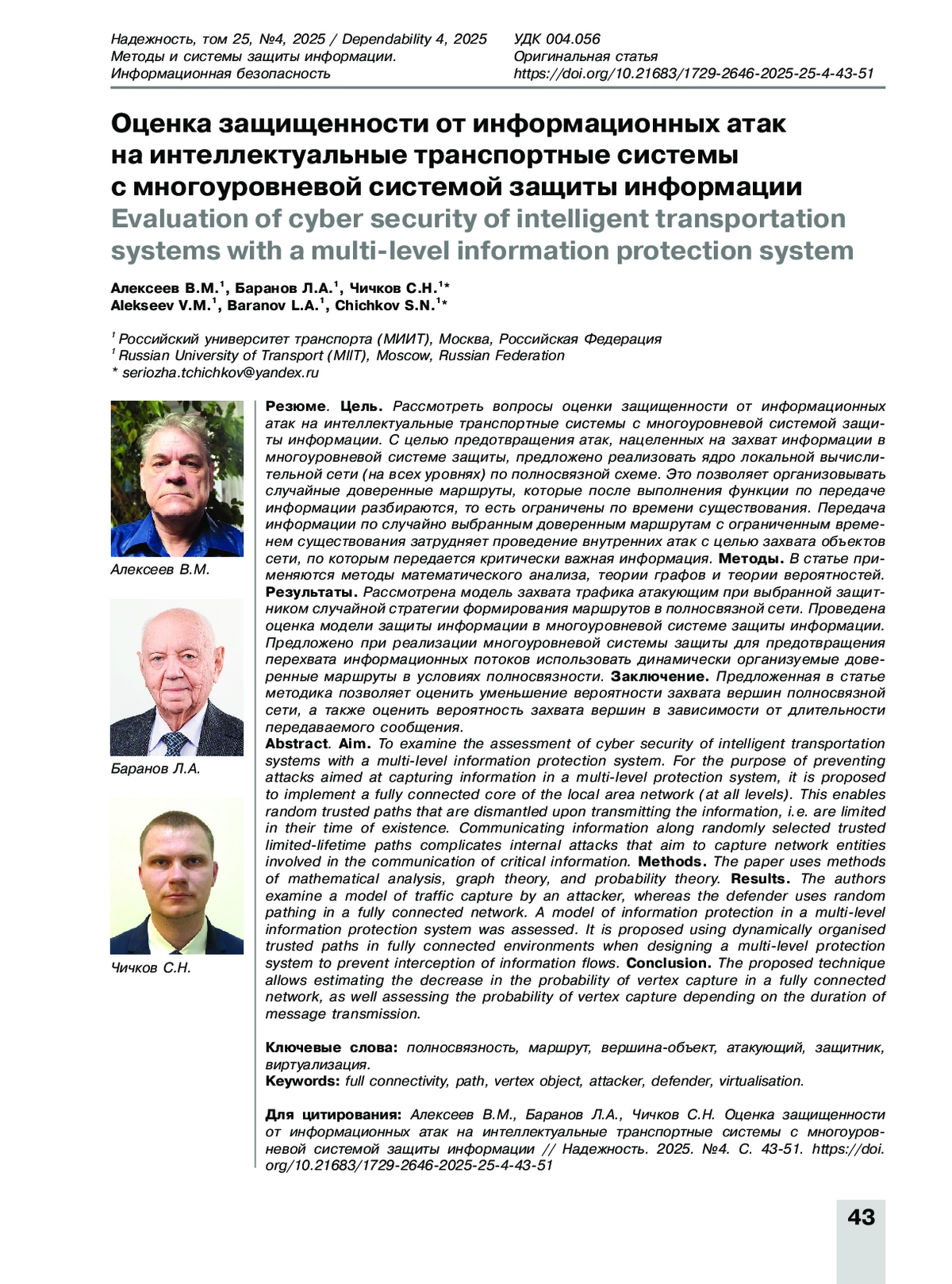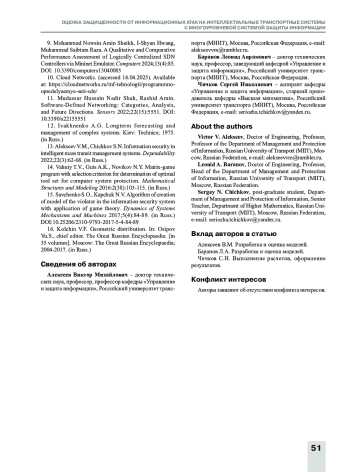 Статья: Оценка защищенности от информационных атак на интеллектуальные транспортные системы с многоуровневой системой защиты информации (2025)