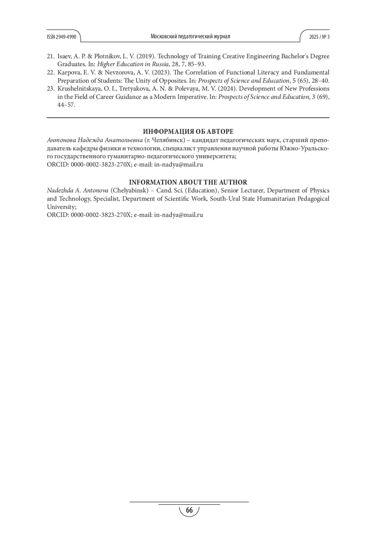 Журнал: МОСКОВСКИЙ ПЕДАГОГИЧЕСКИЙ ЖУРНАЛ
