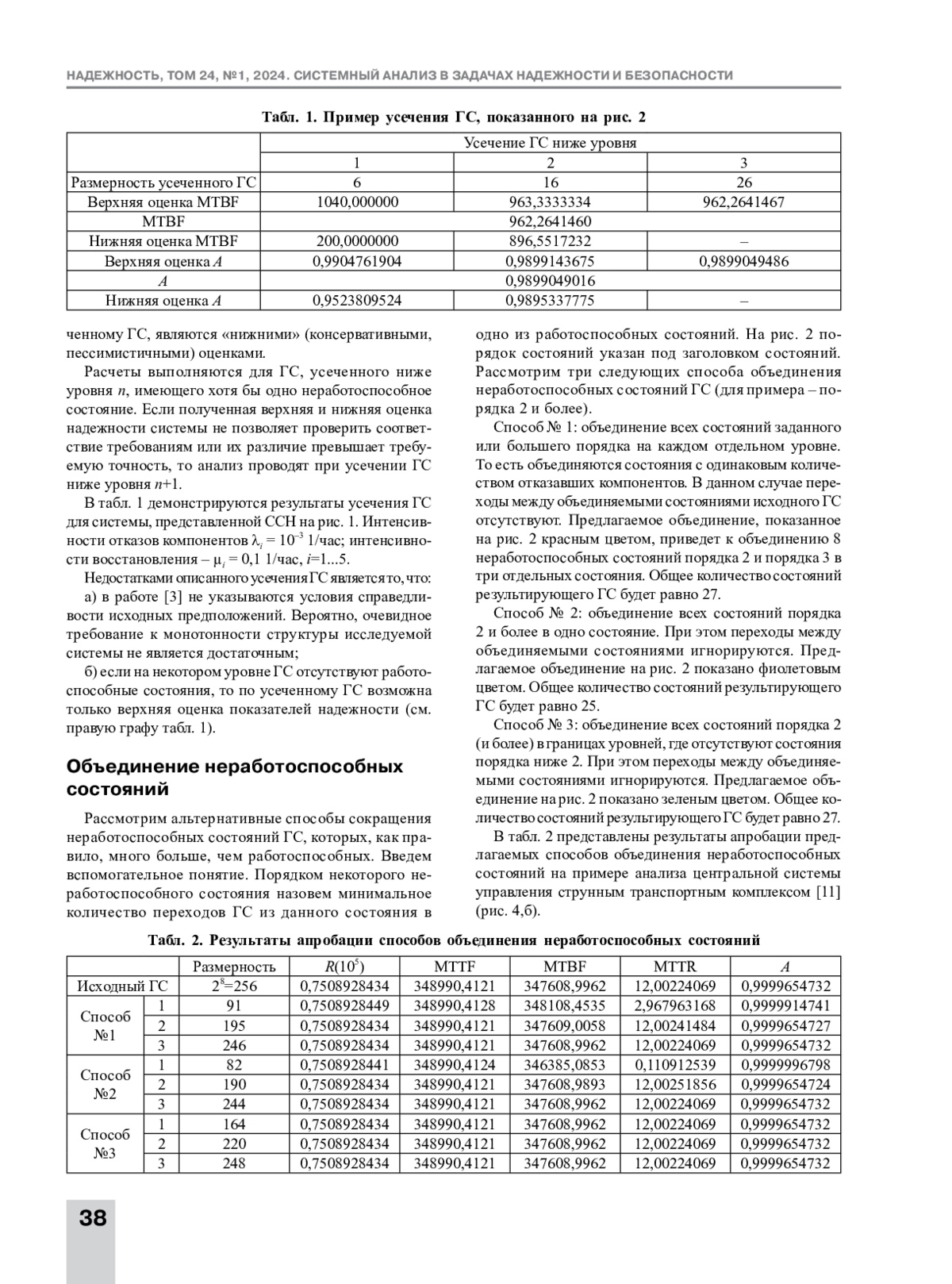 Заключение. Рассматриваемые в статье подходы позволяют расширить область фактической реализуемости марковского метода анализа надежности на системы с большим количеством подсистем.