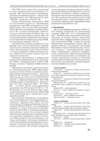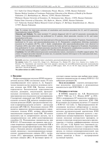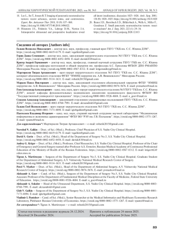 5. Солодкий В.А., Кригер А.Г., Ахаладзе Г.Г., Гоев А.А., Гончаров С.В., Горин Д.С., Загайнов В.Е., Кузнецов Н.С., Кучин Д. М., Латкина Н.В., Лысанюк М. В., Майстренко Н.А., Мартиросян Т.А., Ромащенко П.Н., Шуинова Е.А., Юкина М.Ю. Энуклеация опухолей поджелудочной железы (многоцентровое исследование). Хирургия. Журнал им. Н.И. Пирогова. 2023; 2: 13-20.