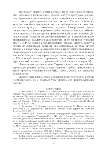 7. Кардаш И. Л. Организационно-правовые аспекты денацификации: исторический опыт и уроки // Международное сотрудничество евразийских государств: политика, экономика, право. 2022. № 4. С. 32-37. EDN: XDMJLR