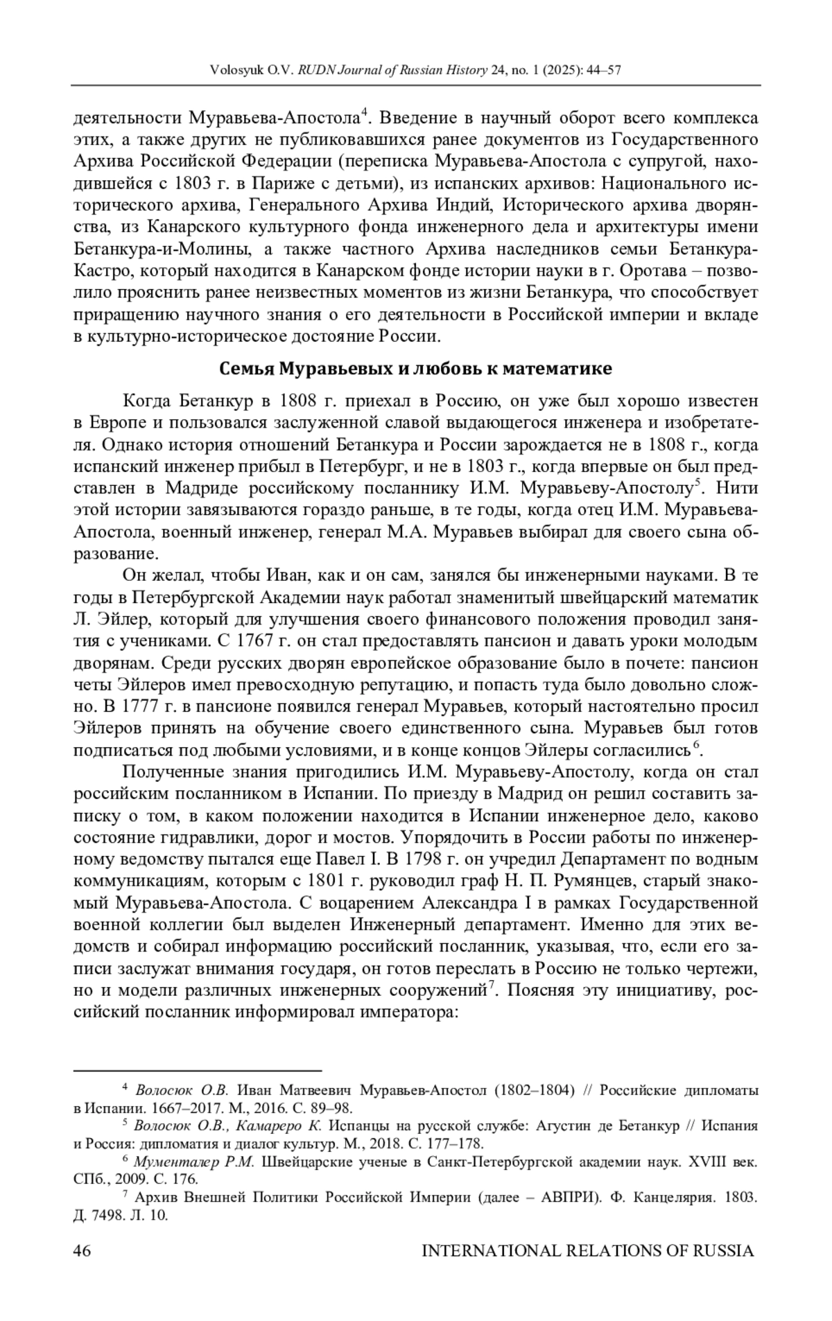 4. Волосюк О.В. Иван Матвеевич Муравьев-Апостол (1802-1804) // Российские дипломаты в Испании. 1667-2017. М.: Международные отношения, 2016. С. 89-98.