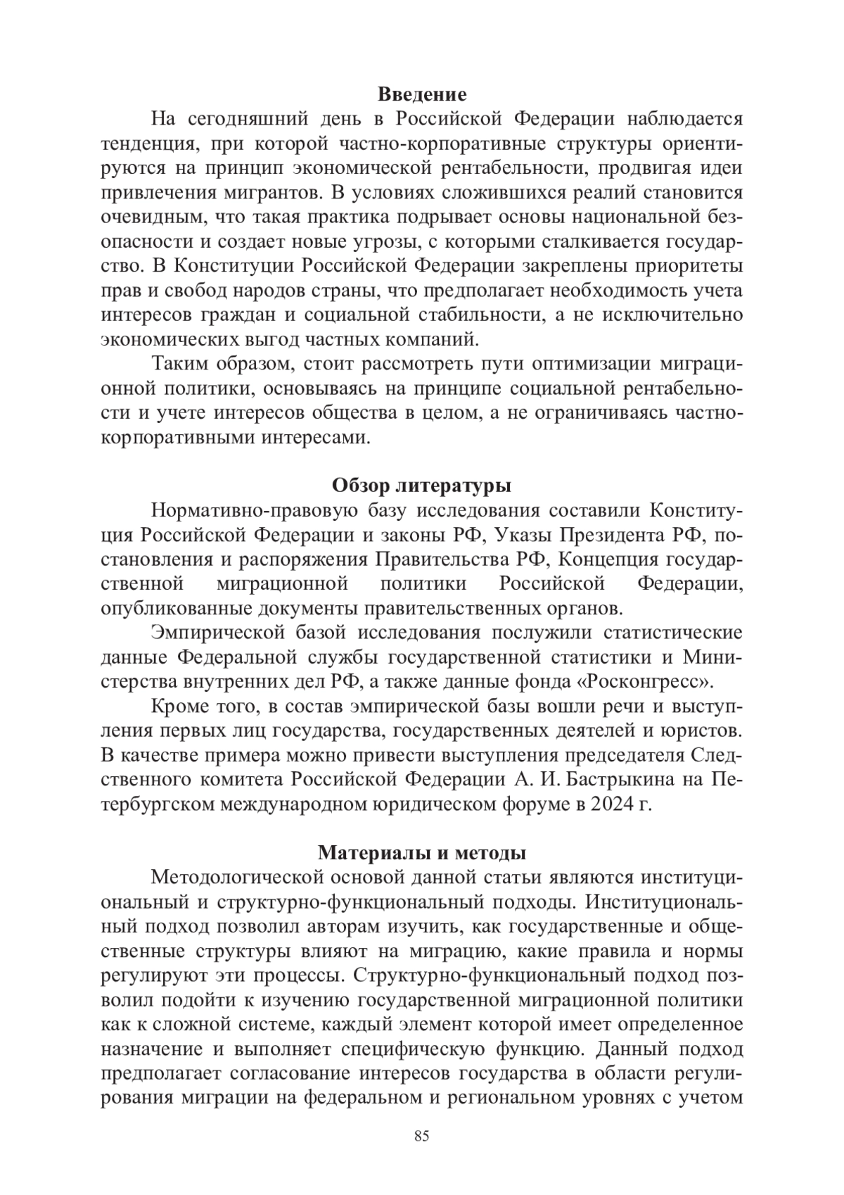 2. Бастрыкин: Миграционную политику в России нужно менять // Парламентская газета. 27.06.2024. URL: (дата обращения: 12.04.2025).