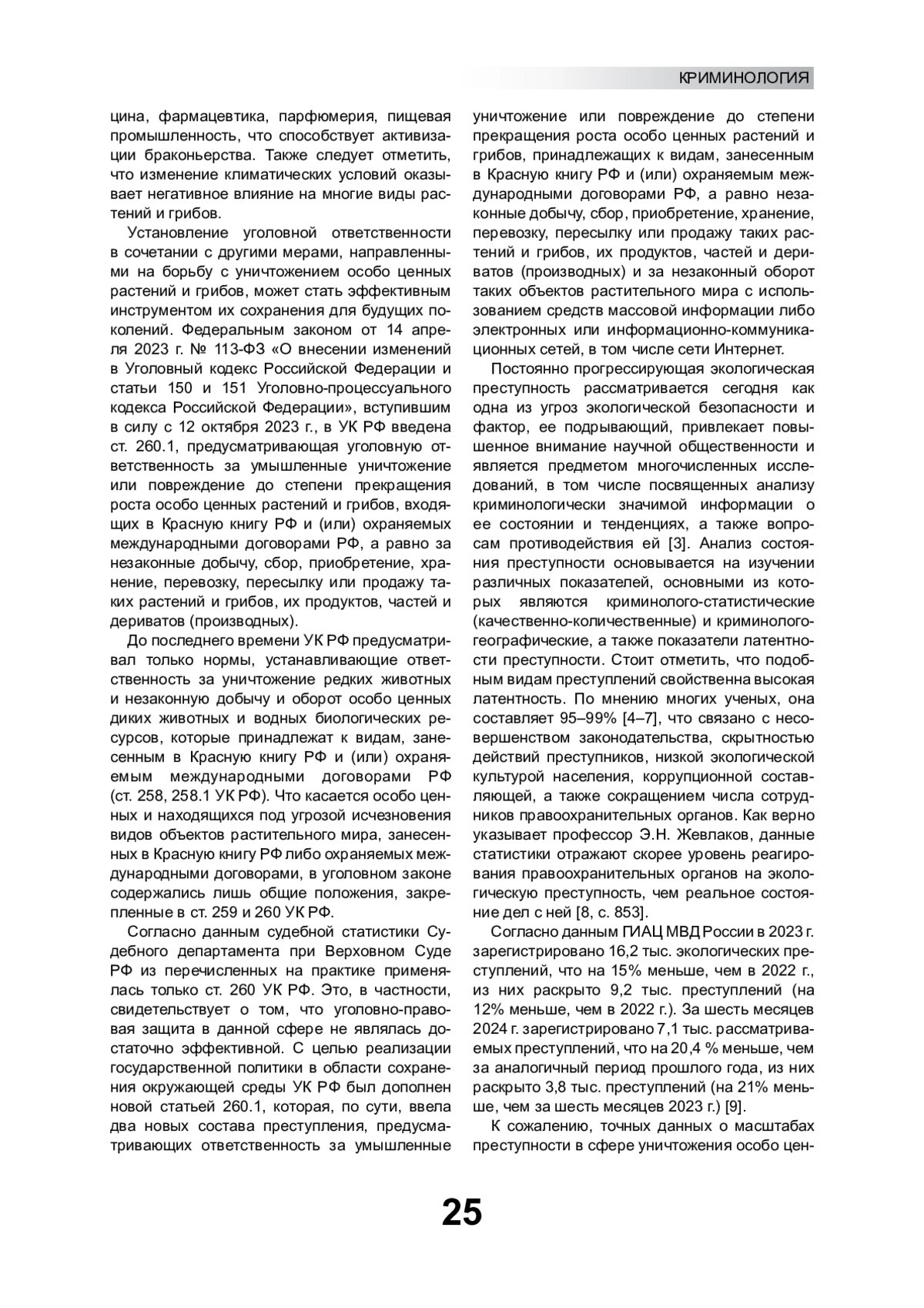 3. Антонян Е.А., Афанасьева О.Р. Состояние и прогноз развития экологической преступности в России [Электронный ресурс]. URL: https://elibrary.ru/item.asp?id=54882732 (дата обращения: 15.11.2024).