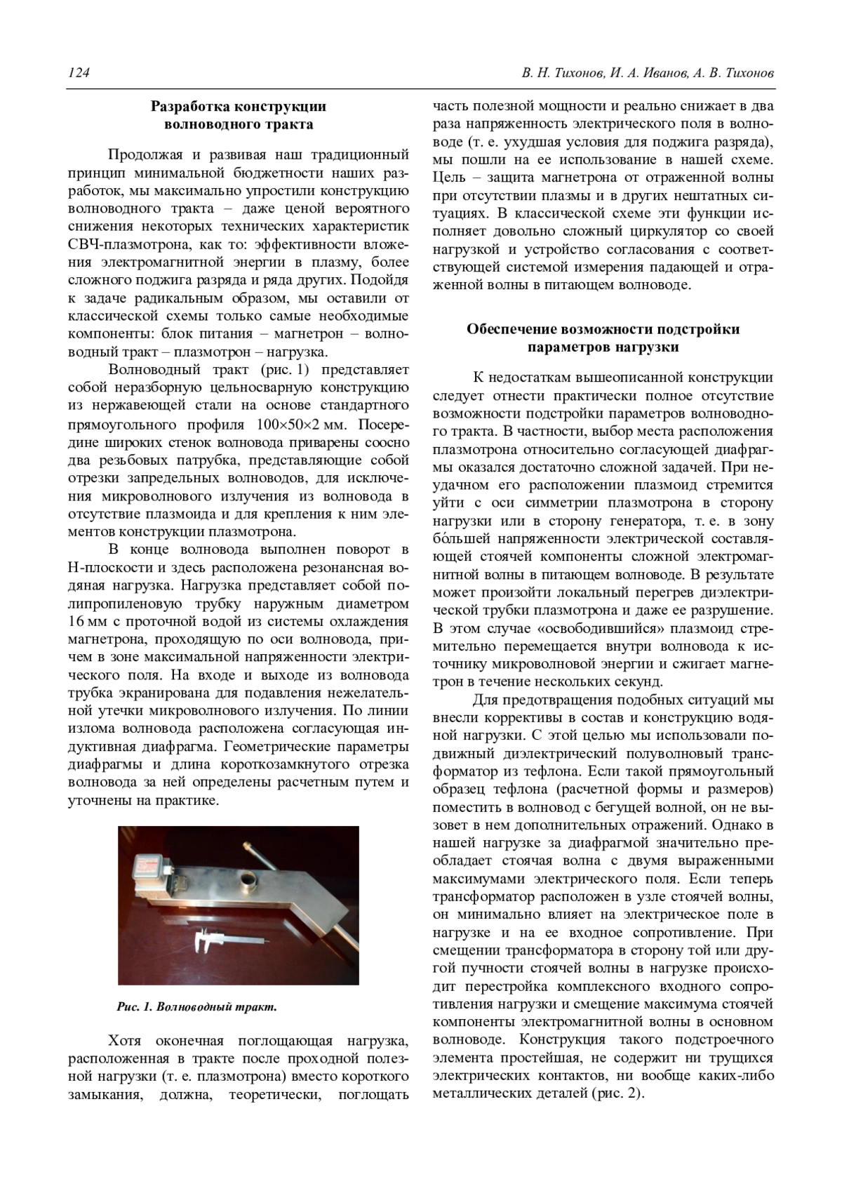 ТИХОНОВ В. Н., ИВАНОВ И. А., ТИХОНОВ А. В. НЕДОРОГИЕ СВЧ-ПЛАЗМОТРОНЫ ДЛЯ НАУКИ И ПРОМЫШЛЕННОСТИ // ПРИКЛАДНАЯ ФИЗИКА. 2018. №4