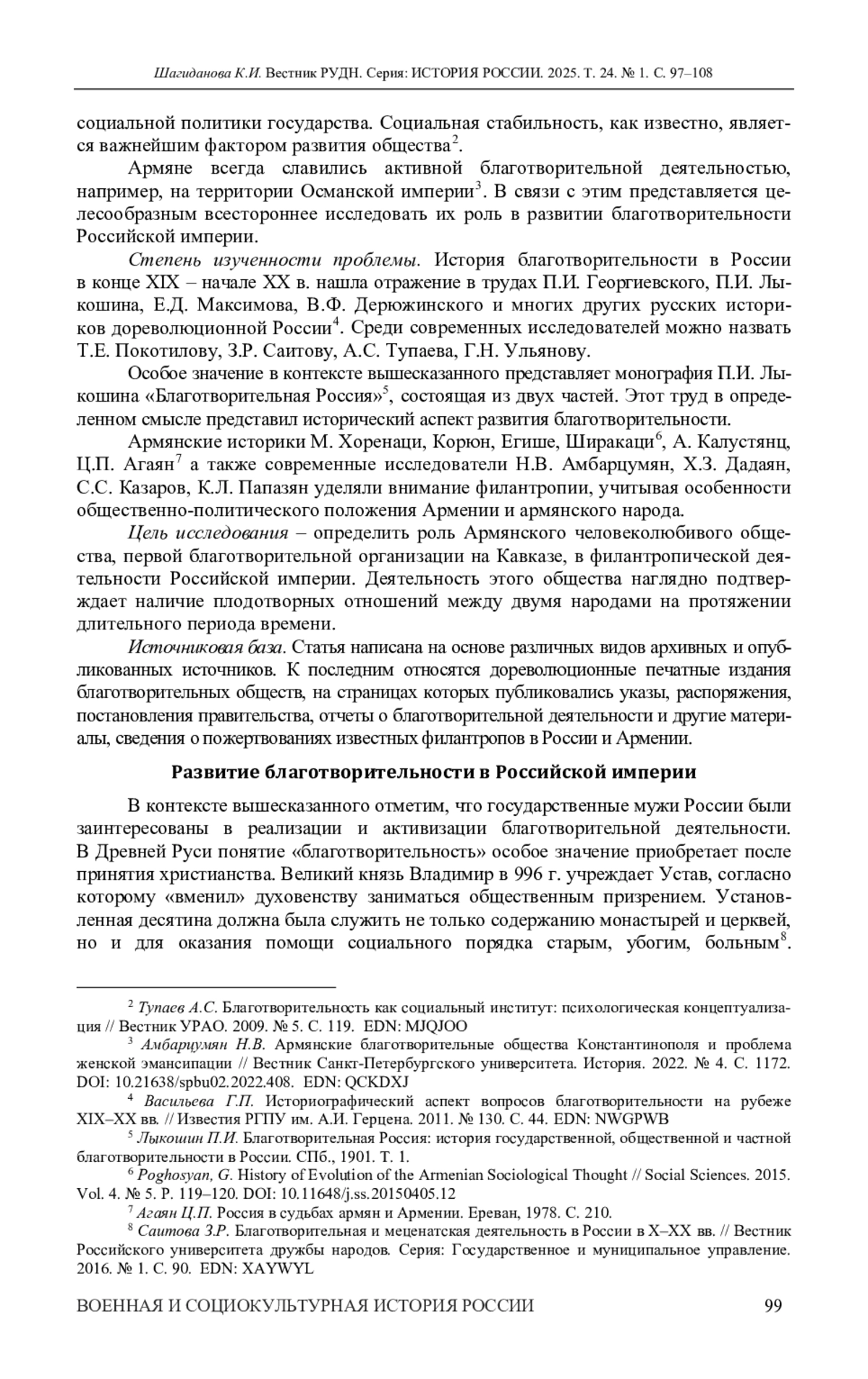 16. Папазян К.Л. Г.Х. Чалхушьян - организатор благотворительности в Нахичевани-на-Дону в конце XIX - начале XX века // Известия вузов. Северо-Кавказский регион. Серия: Общественные науки. 2021. № 2. С. 79-82. DOI: 10.18522/2687-0770-2021-2-79-82 EDN: CZYJEO