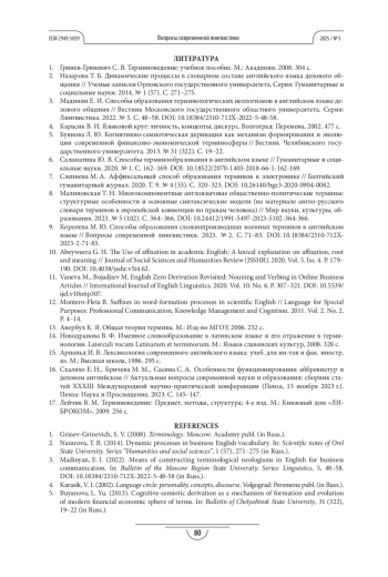 9. Королева М.Ю. Способы образования сложнопроизводных военных терминов в английском языке // Вопросы современной лингвистики. 2023. № 2. С.71-83. DOI: 10.18384/2310-712X-2023-2-71-83