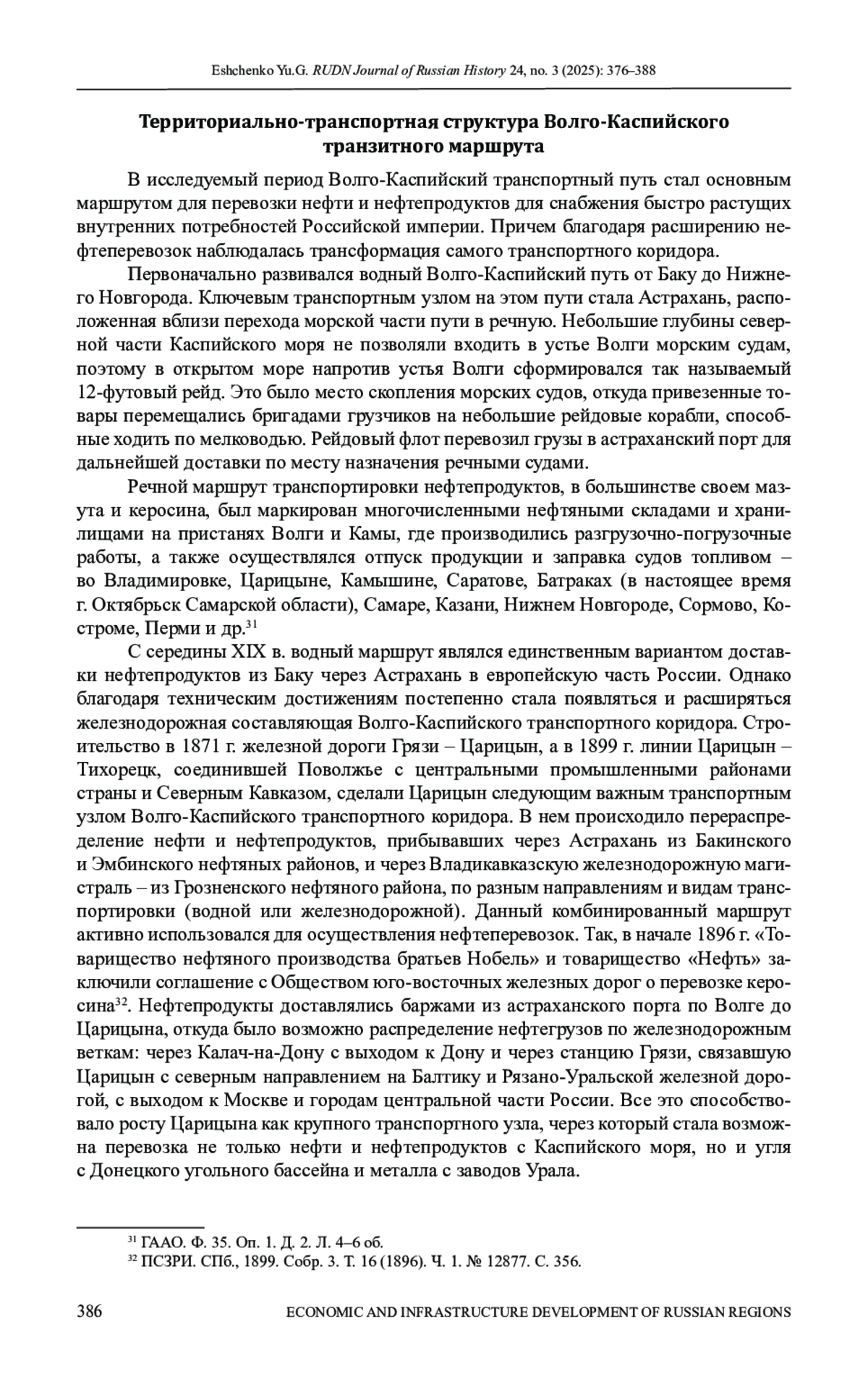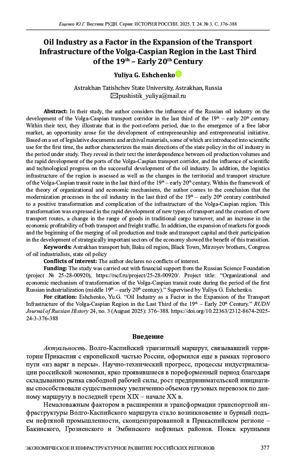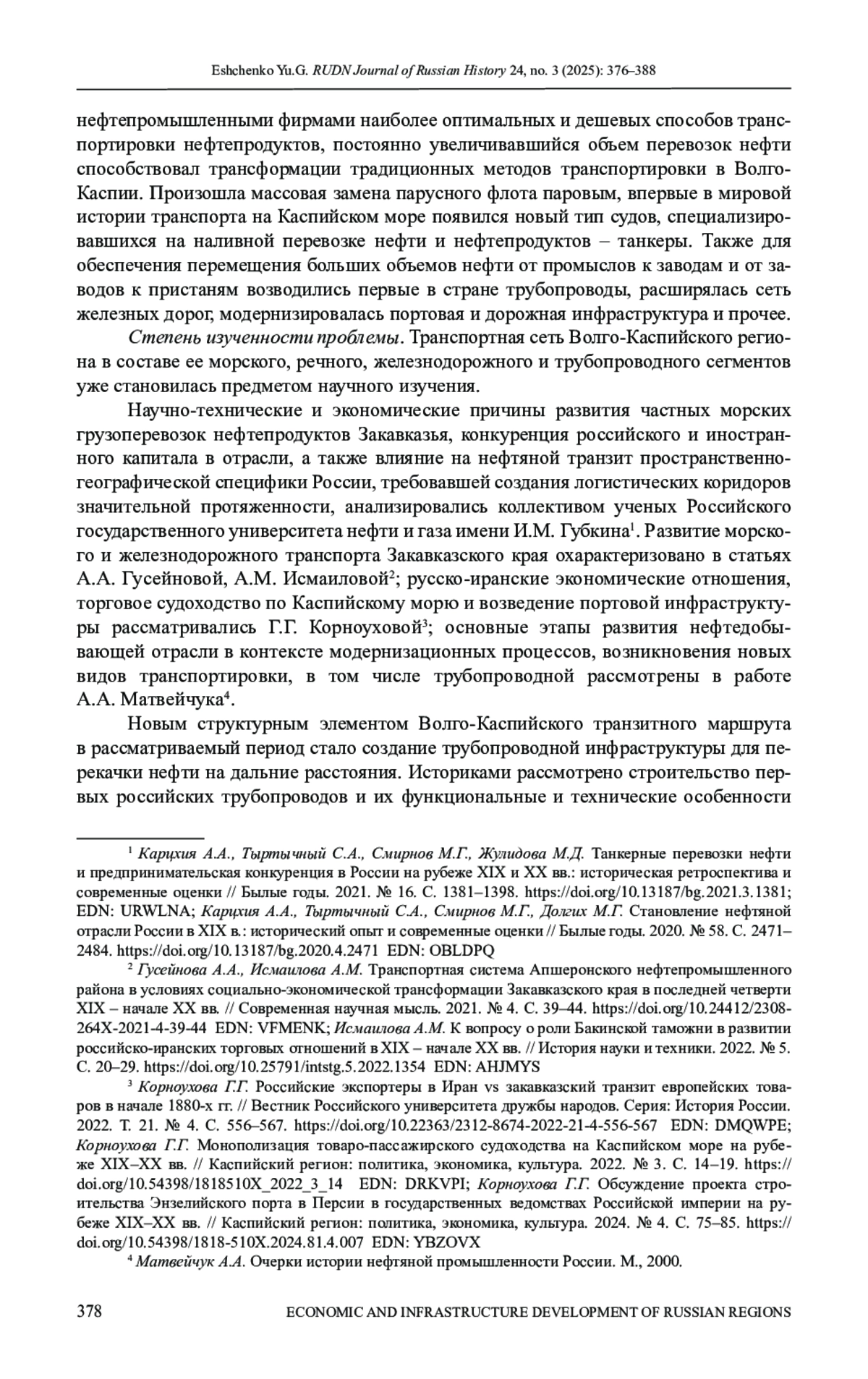 2. Гусейнова А.А., Исмаилова А.М. Транспортная система Апшеронского нефтепромышленного района в условиях социально-экономической трансформации Закавказского края в последней четверти XIX - начале XX вв. // Современная научная мысль. 2021. № 4. С. 39-44. ;. DOI: 10.24412/2308-264X-2021-4-39-44 EDN: VFMENK