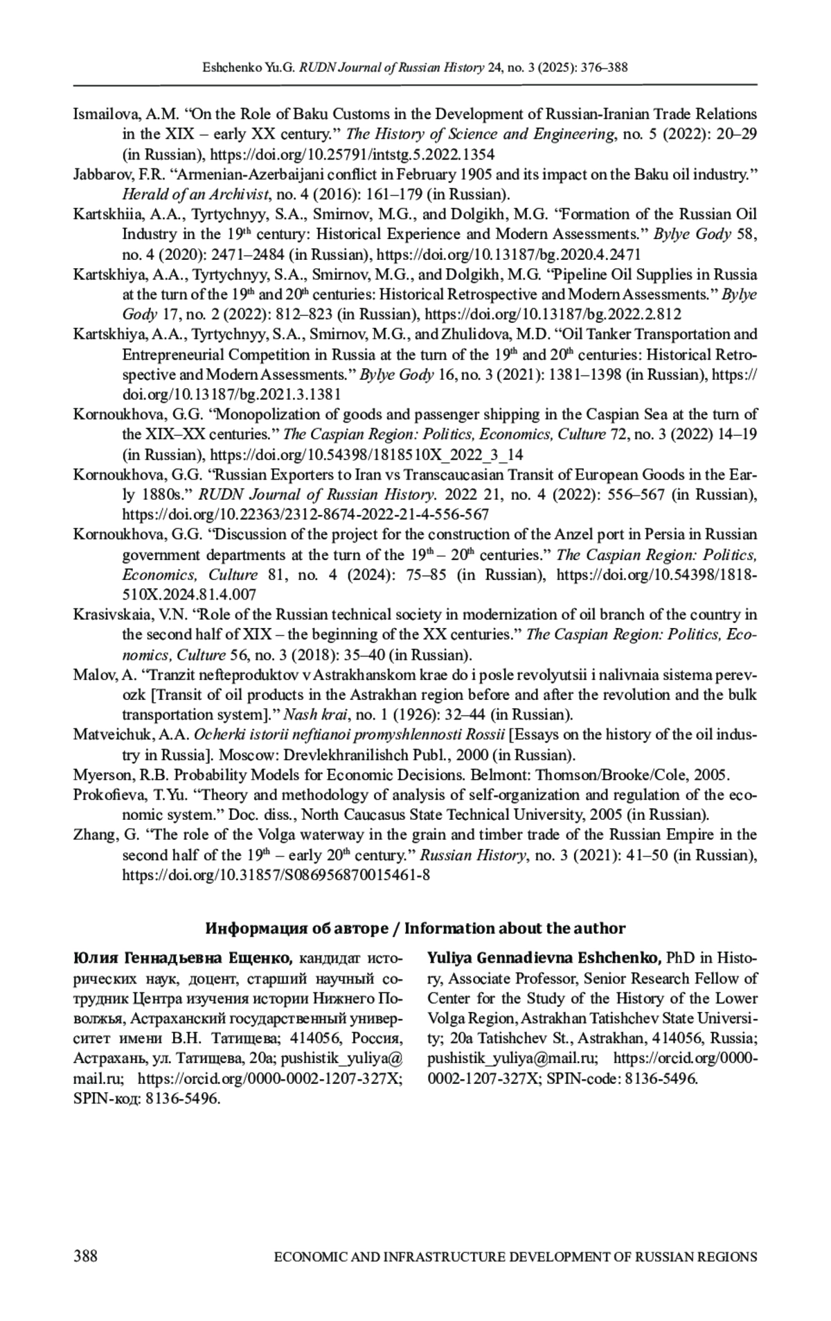 8. Карцхия А.А., Тыртычный С.А., Смирнов М.Г., Жулидова М.Д. Танкерные перевозки нефти и предпринимательская конкуренция в России на рубеже XIX и XX вв.: историческая ретроспектива и современные оценки // Былые годы. 2021. № 16. С. 1381-1398. ;. DOI: 10.13187/bg.2021.3.1381 EDN: URWLNA