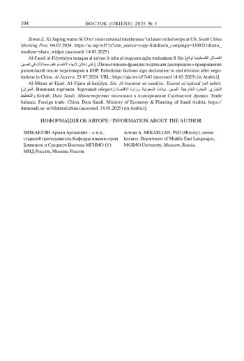 33. Weijia H. China-Saudi Arabia investment cooperation strengthening amid global uncertainties. Global Times. 26.11.2024. URL: https://www.globaltimes.cn/page/202411/1323824.shtml (accessed 14.03.2025).