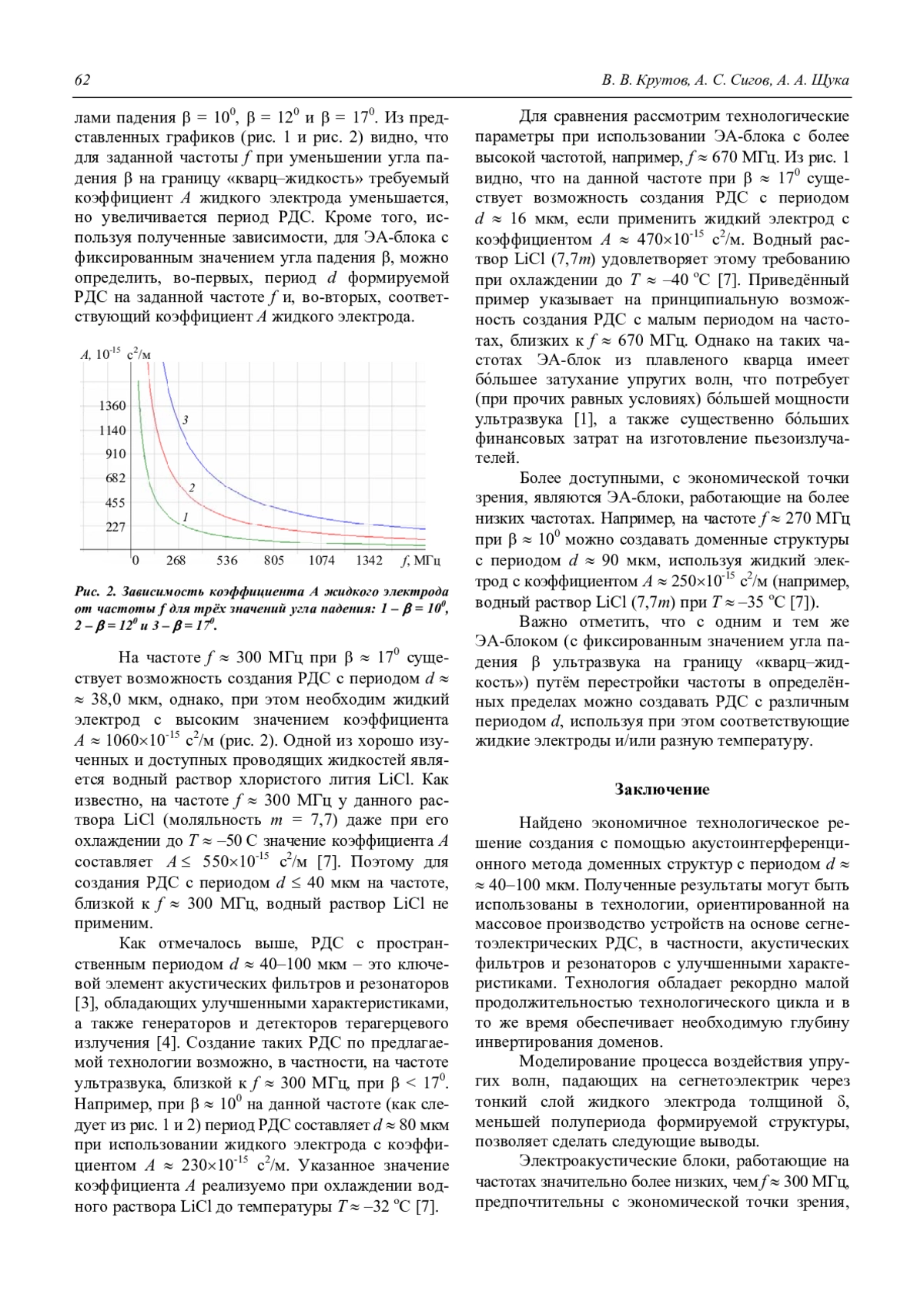 Крутов В. В., Сигов А. С., Щука А. А. Создание сегнетоэлектрических доменных структур с использованием ультразвука вблизи нижней границы СВЧ-диапазона 60