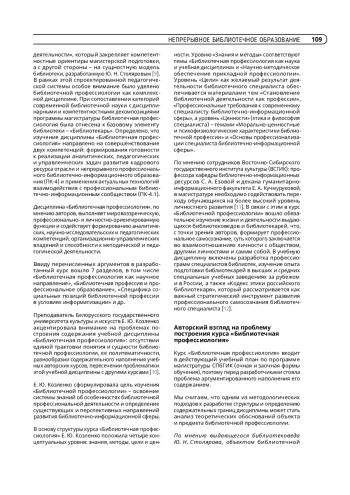 10. Козленко Е. Ю. Проблемы построения содержания учебной дисциплины «Библиотечная профессиология» // Проблемы и перспективы развития высшего образования в сфере культуры : материалы науч.-метод. конф. (Минск, 4 февр. 2020 г.). Минск, 2021. С. 243-247.