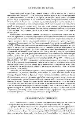 18. Meisami J.S. The Ghazal as Fiction: Implied Speakers and Implied Audience in Hafiz’s Ghazals. Intoxication: Earthly and Heavenly; Seven Studies on the Poet Hafiz of Shiraz. Bern - Berlin - Frankfurt: P. Lang, 1991. Pp. 89-103.