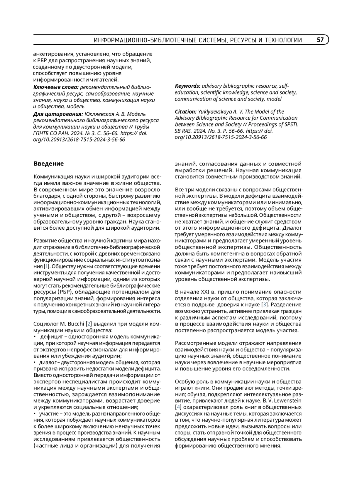Цель статьи – представить результаты исследования по разработке и оценке эффективности РБР, созданного по новой модели. Кратко охарактеризованы модели коммуникации науки и общества, повлиявшие на разработку современных РБР, и предложена двусторонняя модель их создания. Проведен сравнительный анализ действующей (односторонней) и новой моделей создания РБР. Приведены результаты педагогического эксперимента по оценке эффективности РБР, созданного по двусторонней модели и затрагивающего сложившиеся направления коммуникации науки и общества (просвещение, понимание, участие). В ходе эксперимента, проведенного методом анкетирования, установлено, что обращение к РБР для распространения научных знаний, созданному по двусторонней модели, способствует повышению уровня информированности читателей.