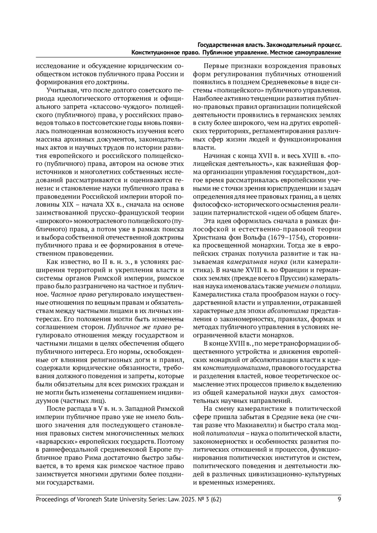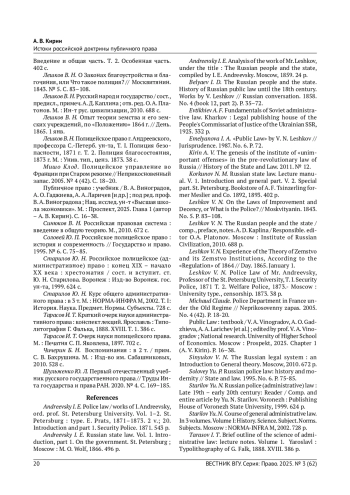 КИРИН А.В. ИСТОКИ РОССИЙСКОЙ ДОКТРИНЫ ПУБЛИЧНОГО ПРАВА // ВЕСТНИК ВОРОНЕЖСКОГО ГОСУДАРСТВЕННОГО УНИВЕРСИТЕТА. СЕРИЯ: ПРАВО. 2025. № 3 (62)