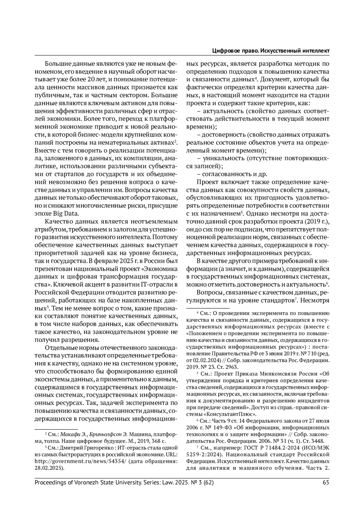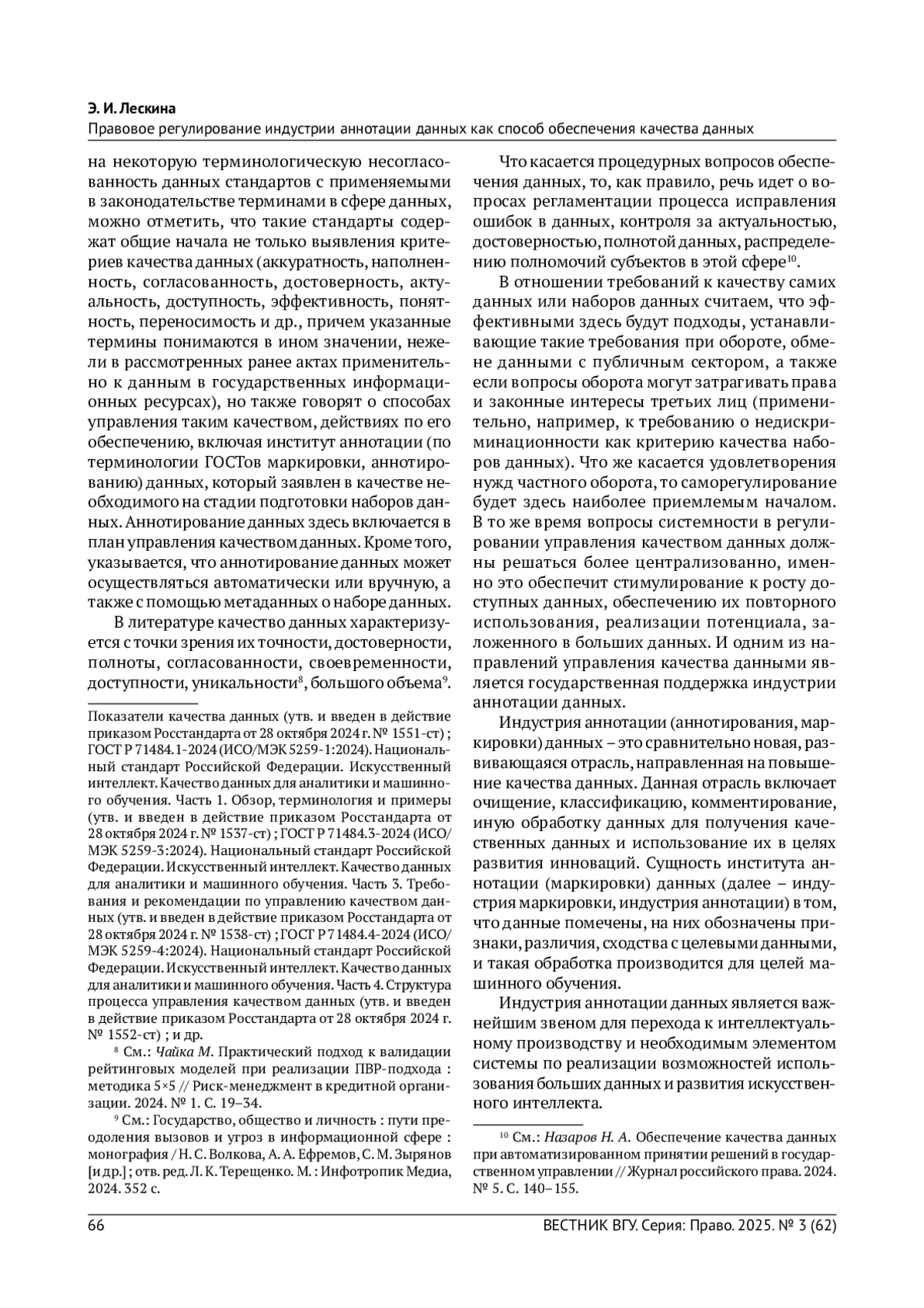 7. Назаров Н. А. Обеспечение качества данных при автоматизированном принятии решений в государственном управлении // Журнал российского права. 2024. № 5. С. 140-155. EDN: AFDYLP