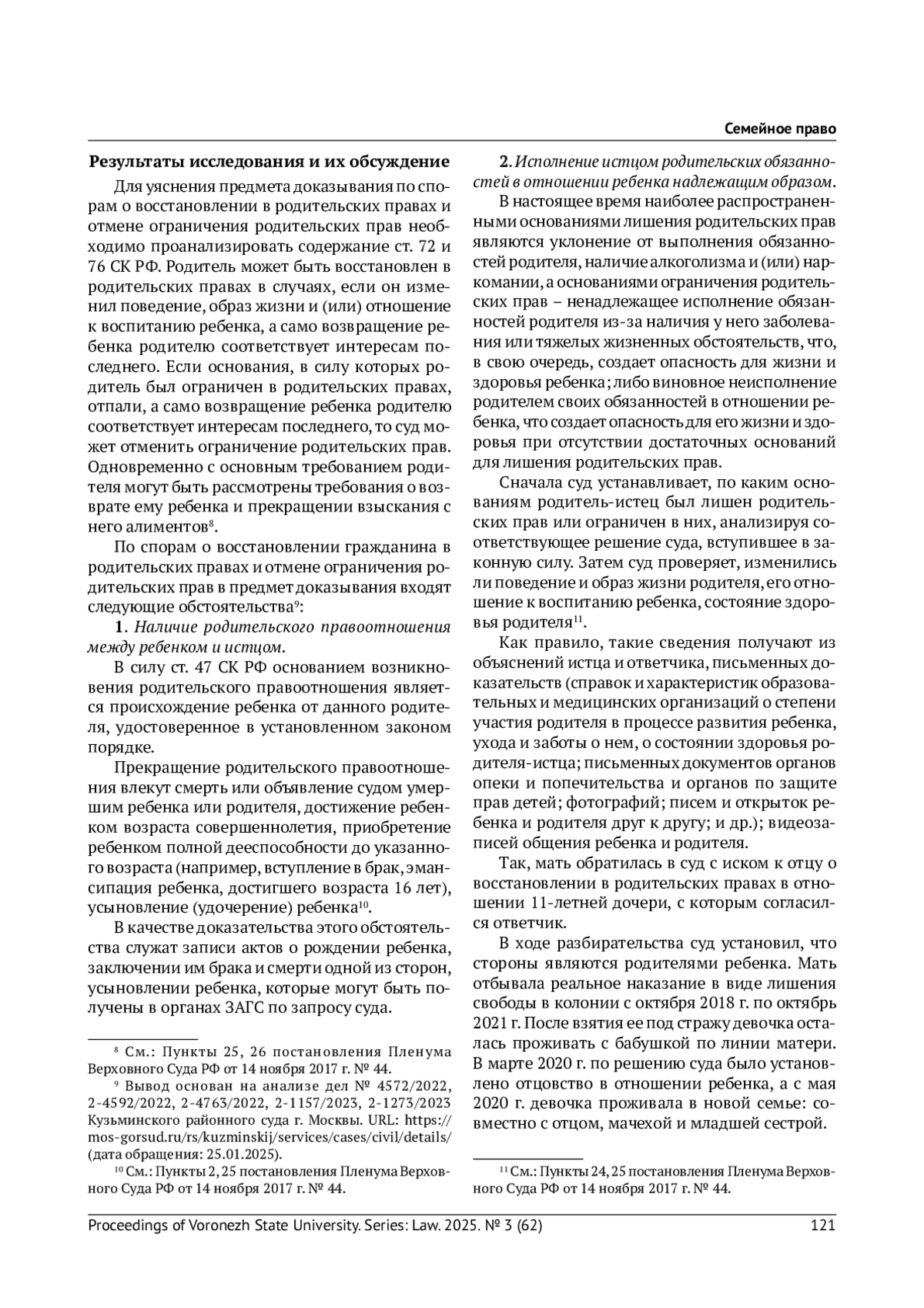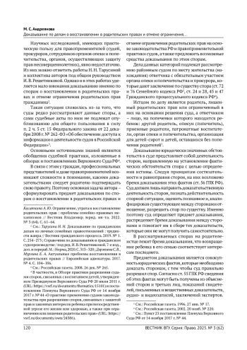 3. Костина С. Е. Восстановление родительских прав как мера защиты прав ребёнка - современное состояние и перспективы развития // Вестник Сарат. гос. юрид. академии. 2019. № 1 (126). С. 119123.