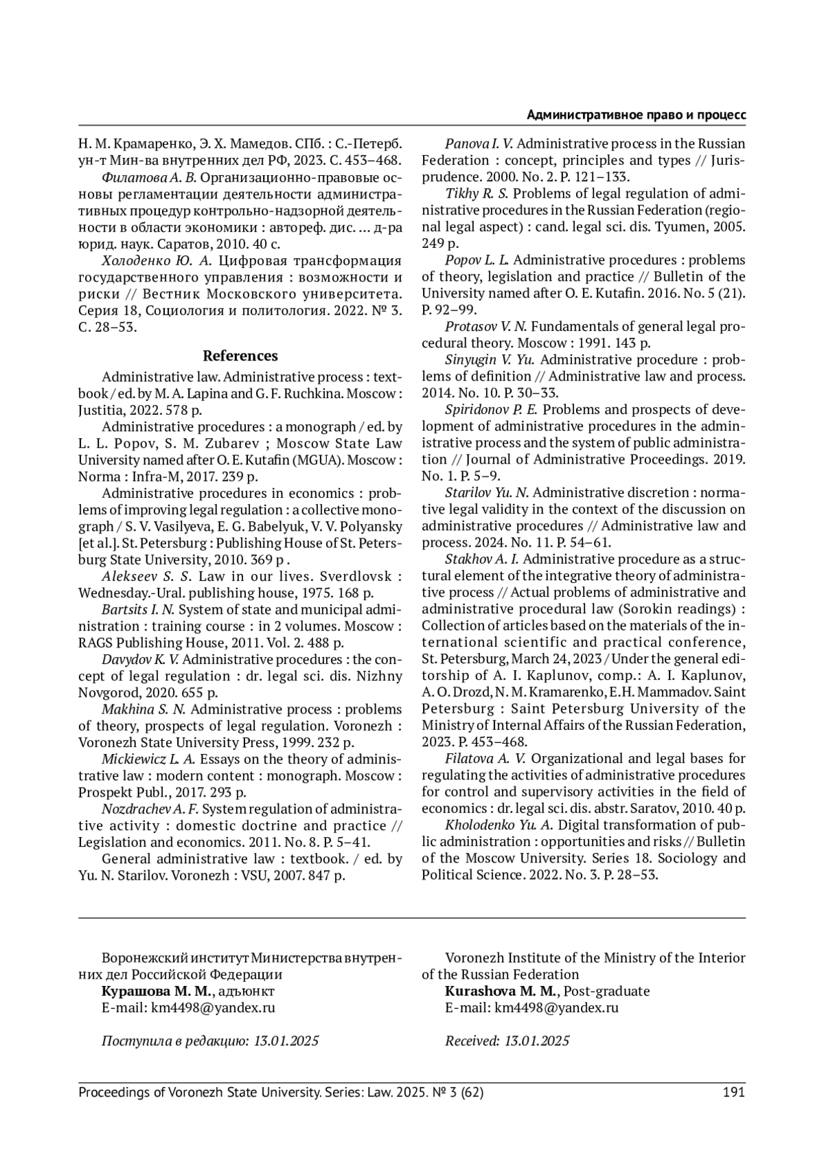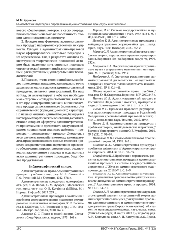 6. Давыдов К. В. Административные процедуры: концепция правового регулирования: дис.. канд. юрид. наук. Ниж. Новгород, 2020. 655 с. EDN: FGBCEK
