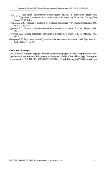 7. Трофимова Т.Б. Тургенев и Данте (к постановке проблемы) // Русская литература. 2004. № 2. С. 169-182. EDN: RZYWCJ