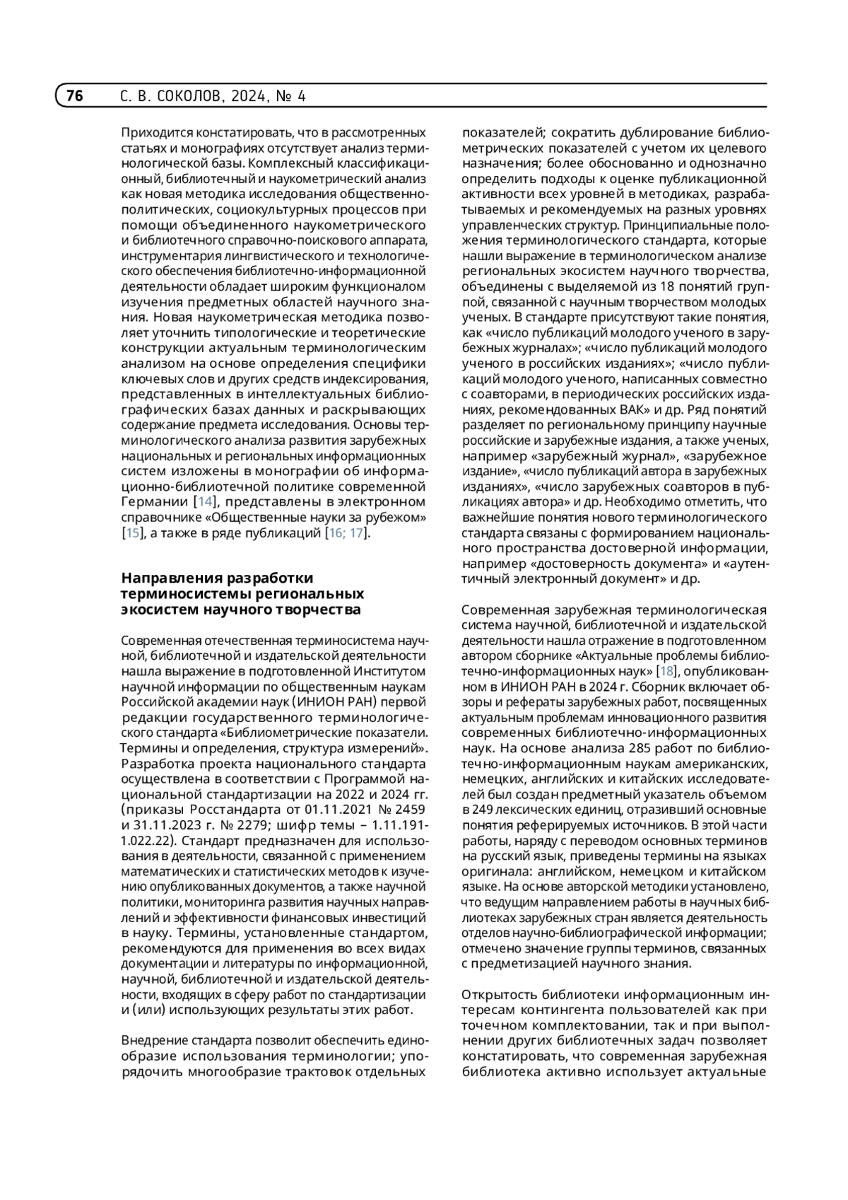17. Соколов С. В. Наукометрический анализ исследований по информационной и библиотечной политике // Библиосфера. 2022. № 2. С. 119-127.