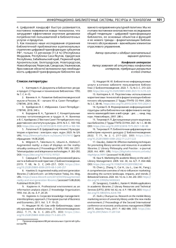12. Нещерет М. Ю. Библиотечно-информационные услуги в личном кабинете пользователя библиотеки // Библиотековедение. 2023. Т. 72, № 3. С. 213-223. https://doi.org/10.25281/0869-608X-2023-72-3-213-223.