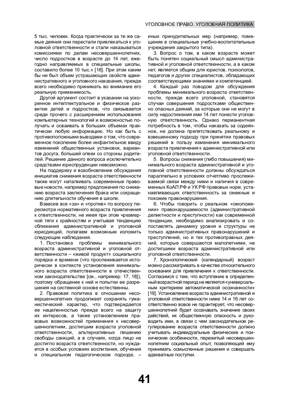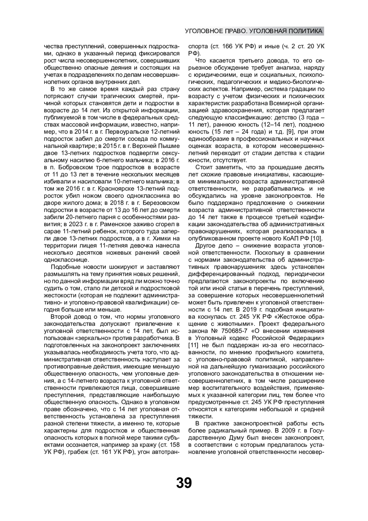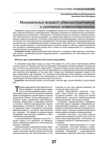 13. Бычкова А.М. Законопроект о снижении возраста уголовной ответственности до двенадцати лет в свете анализа реальной общественной опасности деяний малолетних // Известия Иркутской государственной экономической академии. 2012. № 2.