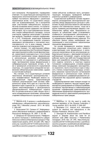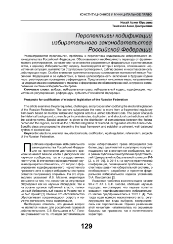 6. Виноградов В.А. Кодификация избирательного законодательства - вопрос актуальный // Гражданин. Выборы. Власть. 2016. № 4. С. 43-45. EDN: ZSHADL