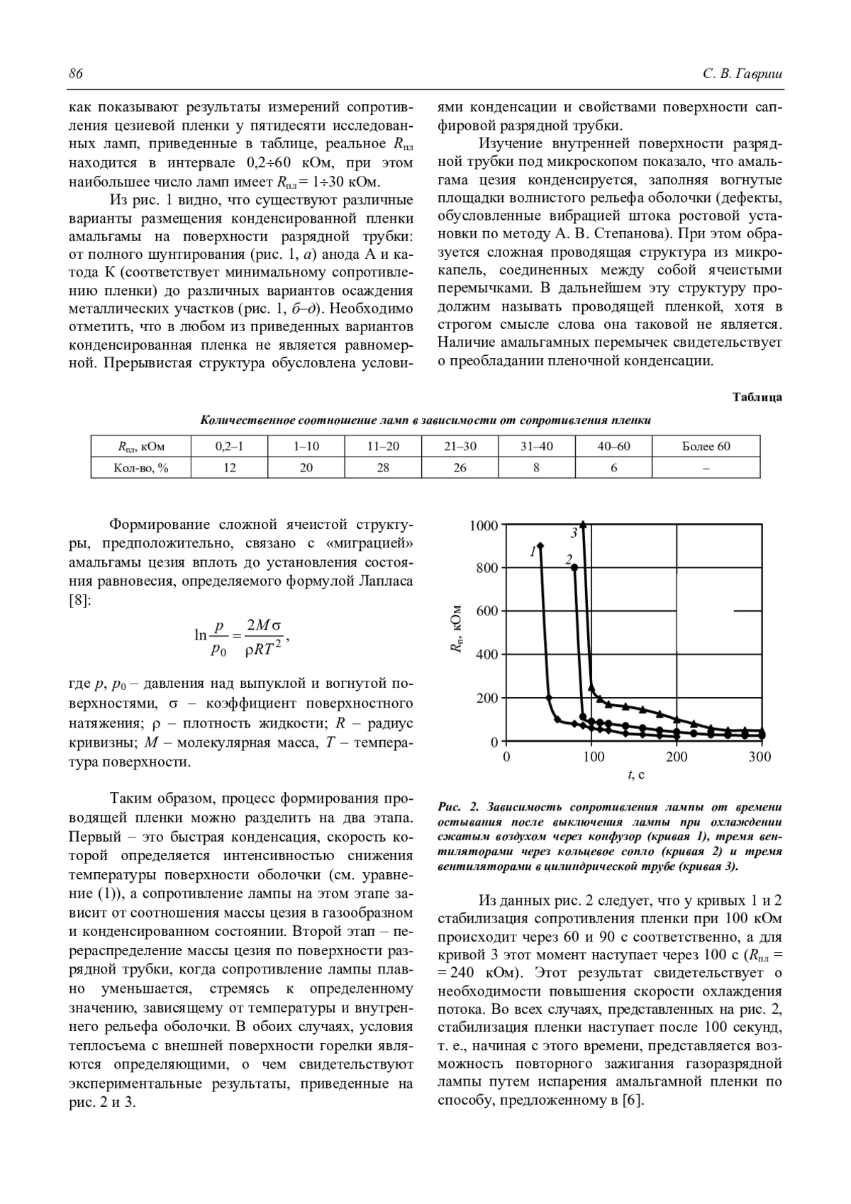 Гавриш С. В. Процессы конденсации и испарения амальгамы цезия при выключении и зажигании газоразрядных ламп 84