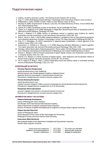 Журнал: ВЕСТНИК МОСКОВСКОГО ГОСУДАРСТВЕННОГО ЛИНГВИСТИЧЕСКОГО УНИВЕРСИТЕТА. ОБРАЗОВАНИЕ И ПЕДАГОГИЧЕСКИЕ НАУКИ